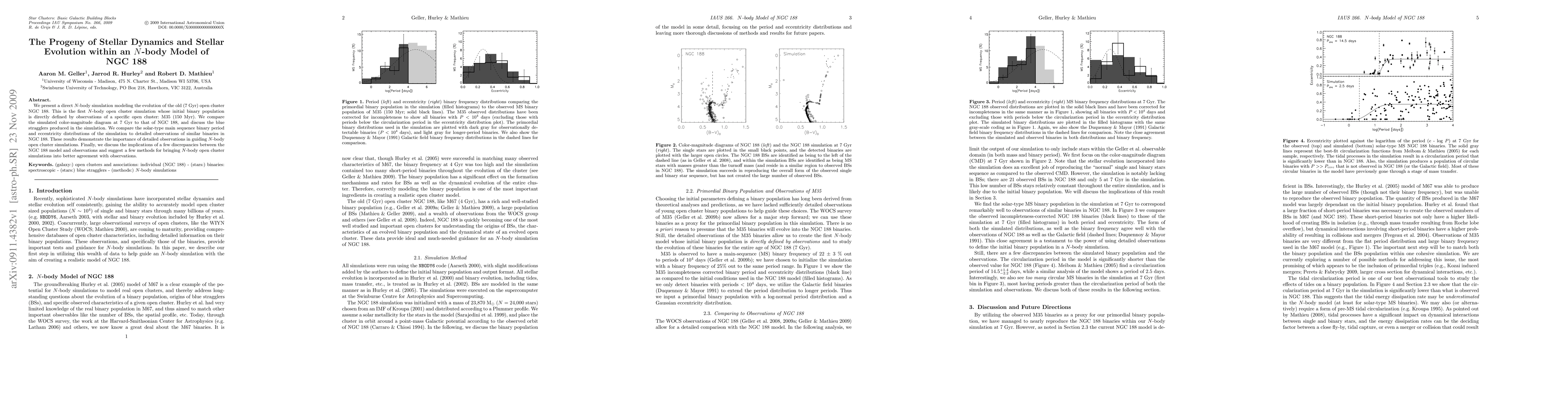 This paper presents an N-body simulation of the evolution of the 7 Gyr old open cluster NGC 188, using initial binary populations defined by observations of the younger cluster M35. The study compares the simulation's color-magnitude diagram and binary properties to NGC 188 observations, highlighting the importance of observational data in guiding such simulations and suggesting methods to improve model accuracy.