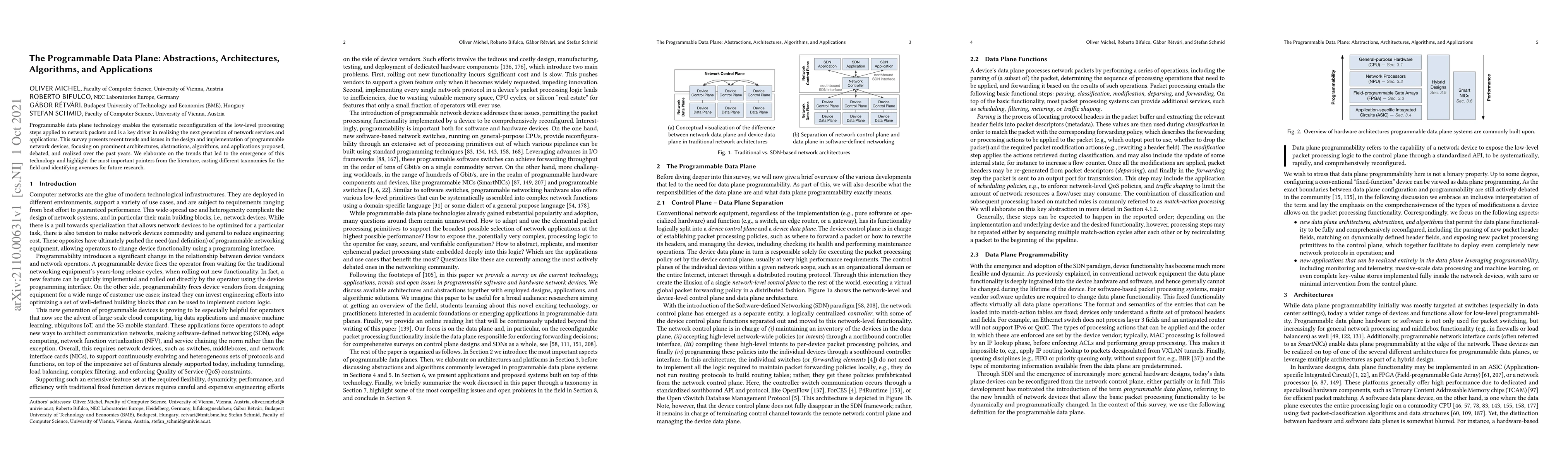 This paper surveys the advancements in programmable data plane technology, emphasizing architectures, abstractions, algorithms, and applications that enable flexible network packet processing. It highlights key trends and future research directions, providing a comprehensive overview of the field's evolution and current state.