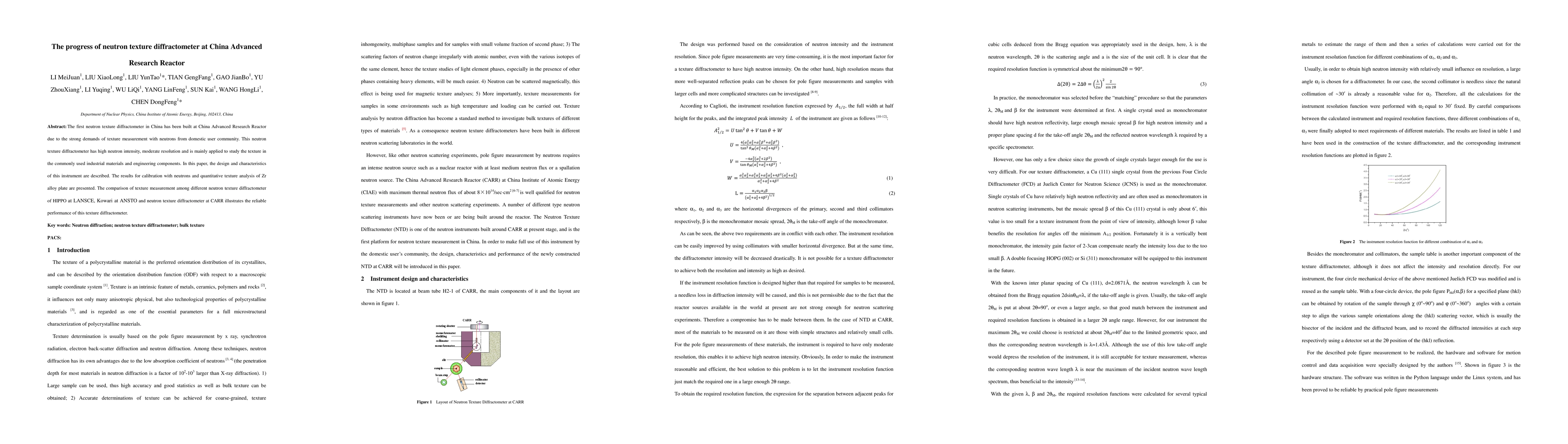 A new neutron texture diffractometer has been built in China to study industrial materials and engineering components, showcasing its reliable performance through calibration and texture analysis of a Zr alloy plate.