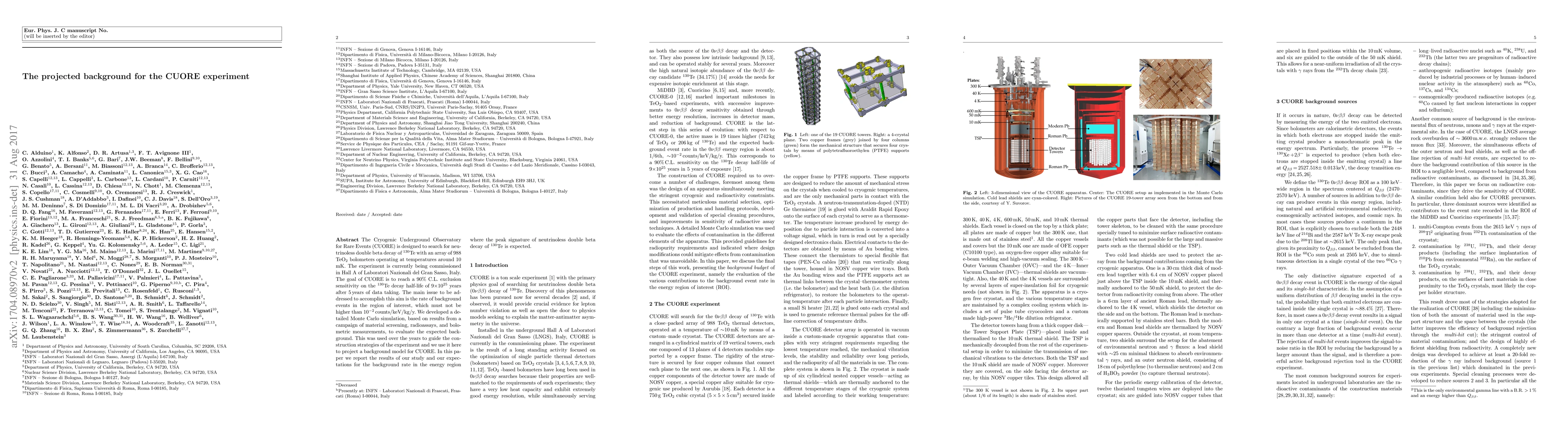 The CUORE experiment aims to detect neutrinoless double beta decay of 130Te with a highly sensitive background model, which projects a background rate of 10^-2 counts/keV/kg/y, crucial for achieving its 90% C.L. sensitivity goal.
