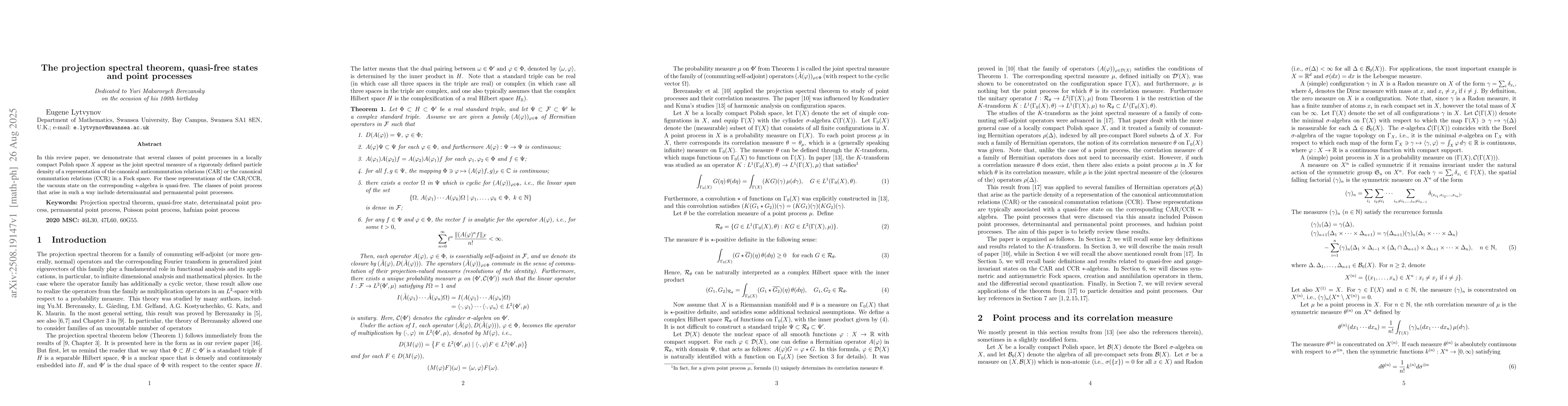In this review paper, we demonstrate that several classes of point processes in a locally compact Polish space $X$ appear as the joint spectral measure of a rigorously defined particle density of a representation of the canonical anticommutation relations (CAR) or the canonical commutation relations (CCR) in a Fock space. For these representations of the CAR/CCR, the vacuum state on the corresponding $*$-algebra is quasi-free. The classes of point process that arise in such a way include determinantal and permanental point processes.