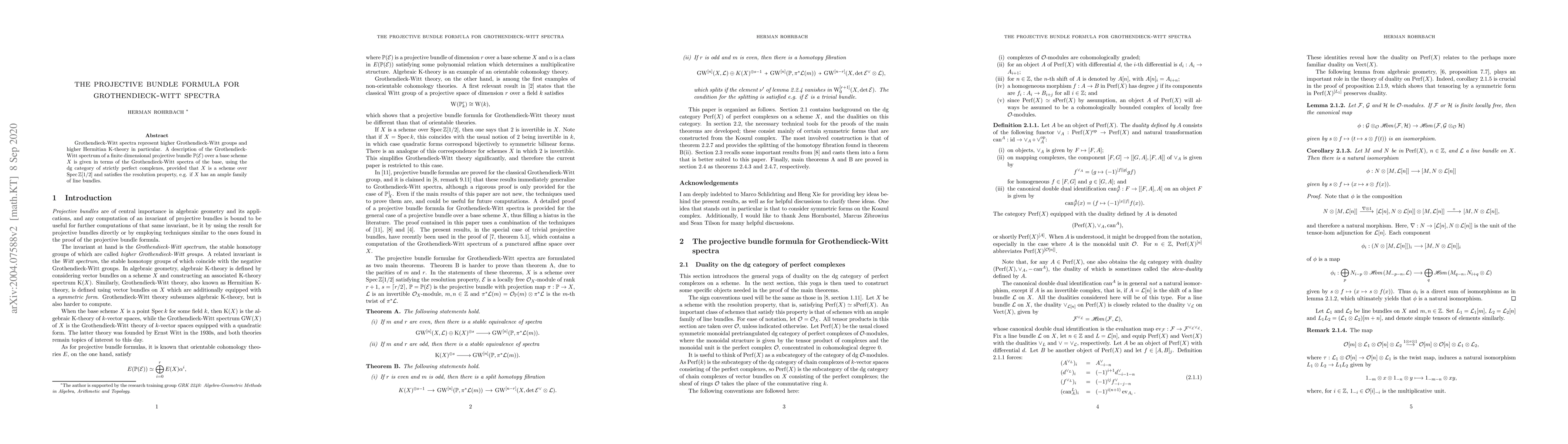 The paper provides a projective bundle formula describing the Grothendieck-Witt spectrum of a finite dimensional projective bundle over a scheme, using the dg category of strictly perfect complexes, under the condition that the base scheme is over $\text{Spec }\mathbb{Z}[1/2]$ and satisfies the resolution property.