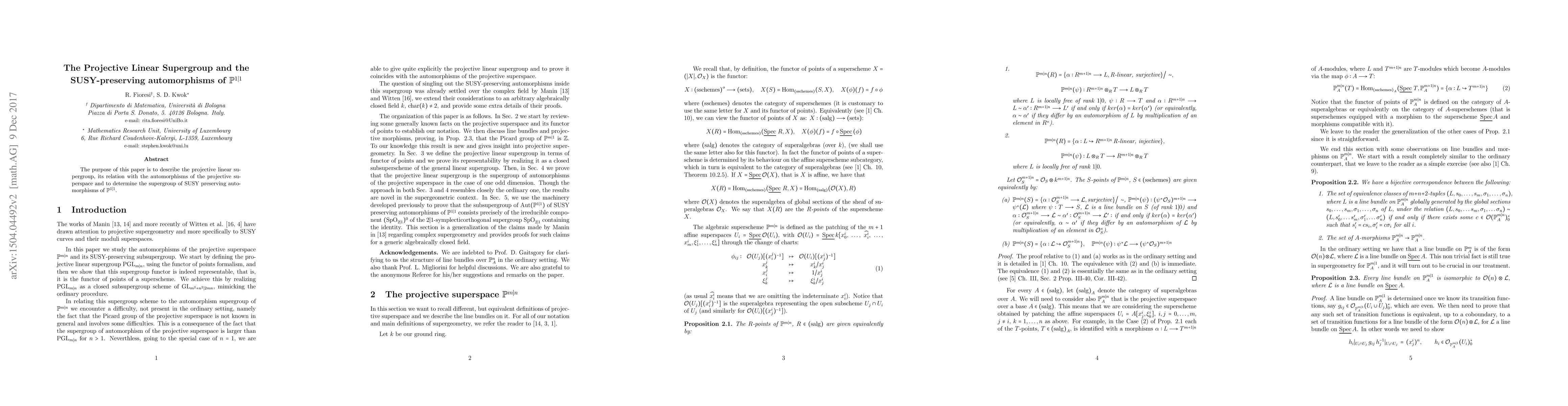 The purpose of this paper is to describe the projective linear supergroup, its relation with the automorphisms of the projective superspace and to determine the supergroup of SUSY preserving automorphisms of ${\mathbf P}^{1|1}$