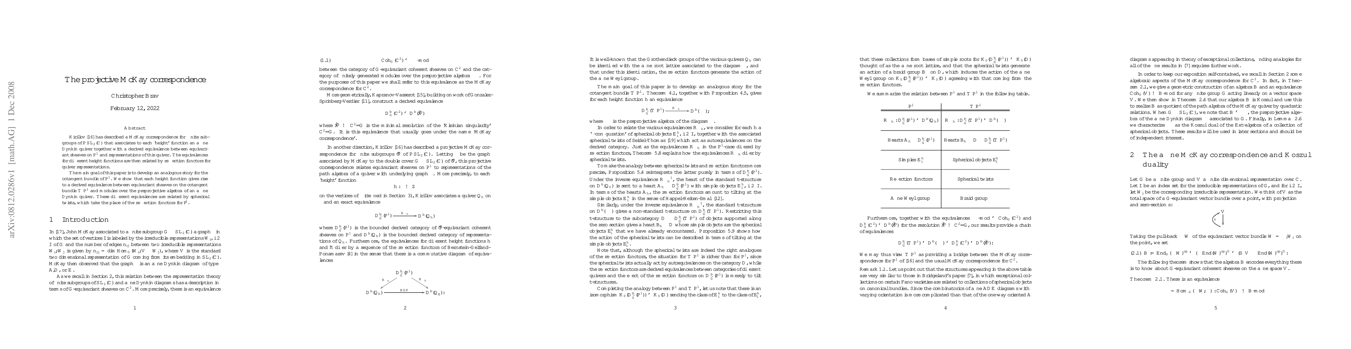 Kirillov has described a McKay correspondence for finite subgroups of PSL_{2}(C) that associates to each `height' function an affine Dynkin quiver together with a derived equivalence between equivariant sheaves on the projective line P^1 and representations of this quiver. The equivalences for different height functions are then related by reflection functors for quiver representations. The main goal of this paper is to develop an analogous story for the cotangent bundle of P^1. We show that each height function gives rise to a derived equivalence between equivariant sheaves on the cotangent bundle T*P^1 and modules over the preprojective algebra of an affine Dynkin quiver. These different equivalences are related by spherical twists, which take the place of the reflection functors for P^1.