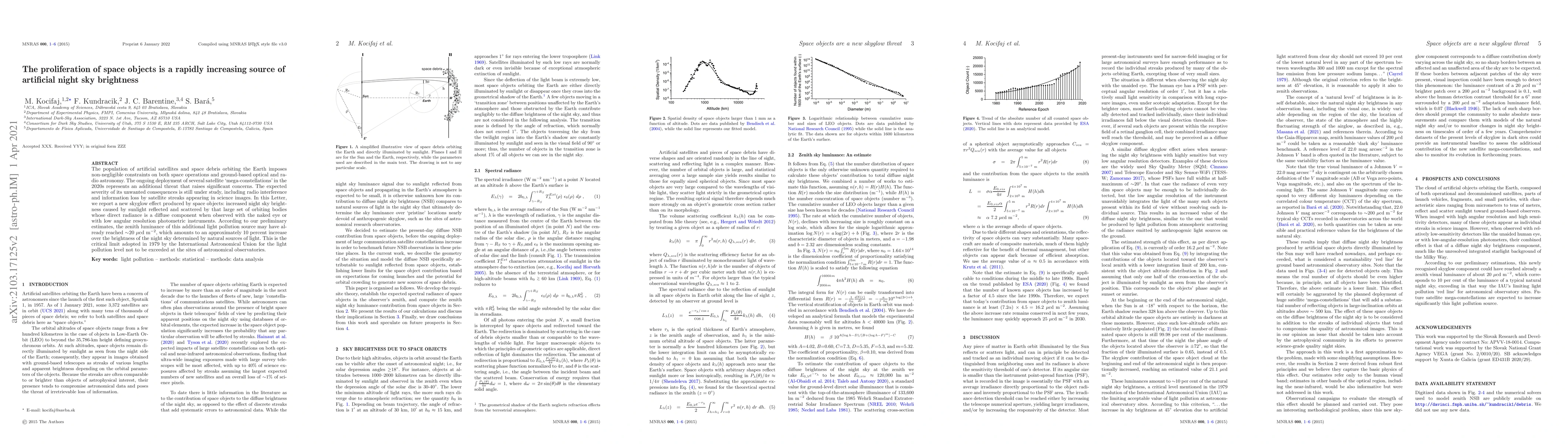 The proliferation of space objects is causing a new type of light pollution that increases night sky brightness by up to 10%.