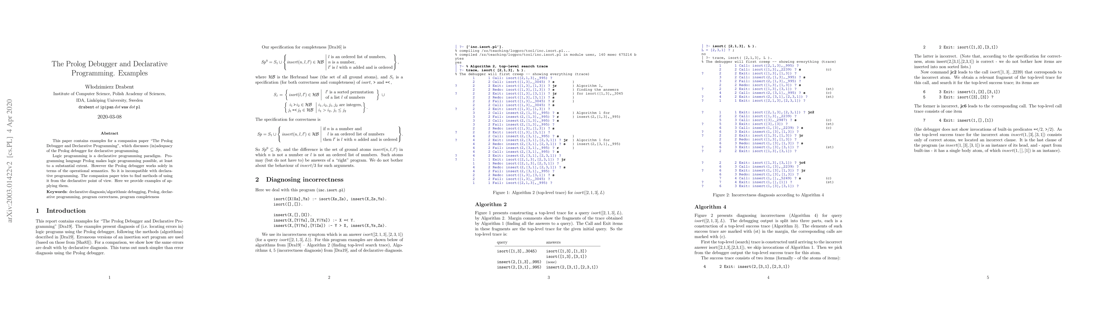 This paper exemplifies the methods proposed in the companion paper "The Prolog Debugger and Declarative Programming" to reconcile the operational semantics-based Prolog debugger with the declarative programming paradigm. These examples demonstrate practical applications of the discussed techniques.