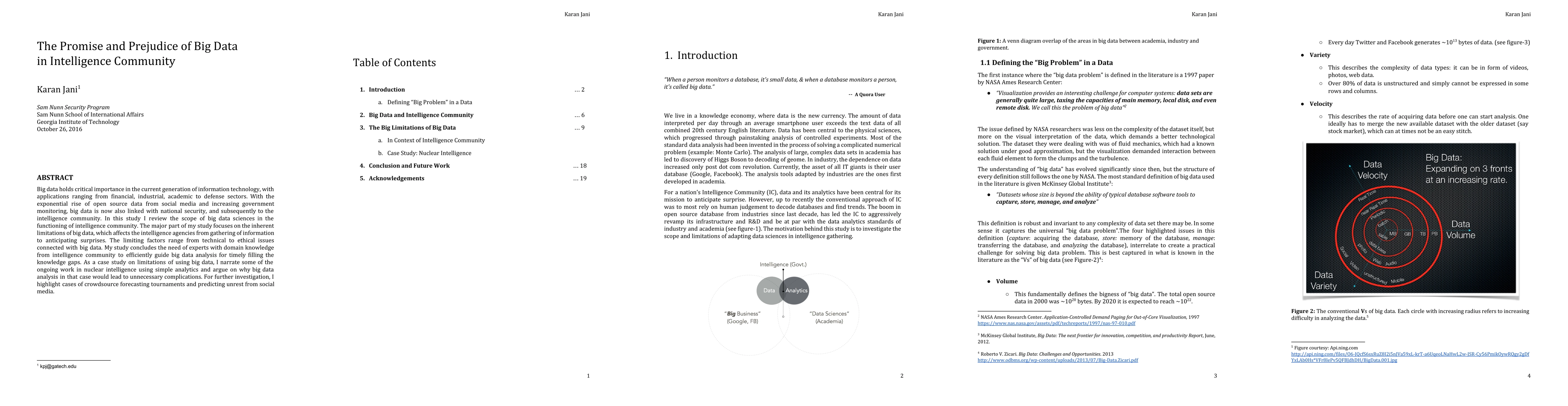Big data holds critical importance in the current generation of information technology, with applications ranging from financial, industrial, academic to defense sectors. With the exponential rise of open source data from social media and increasing government monitoring, big data is now also linked with national security, and subsequently to the intelligence community. In this study I review the scope of big data sciences in the functioning of intelligence community. The major part of my study focuses on the inherent limitations of big data, which affects the intelligence agencies from gathering of information to anticipating surprises. The limiting factors range from technical to ethical issues connected with big data. My study concludes the need of experts with domain knowledge from intelligence community to efficiently guide big data analysis for timely filling the knowledge gaps. As a case study on limitations of using big data, I narrate some of the ongoing work in nuclear intelligence using simple analytics and argue on why big data analysis in that case would lead to unnecessary complications. For further investigation, I highlight cases of crowdsource forecasting tournaments and predicting unrest from social media.