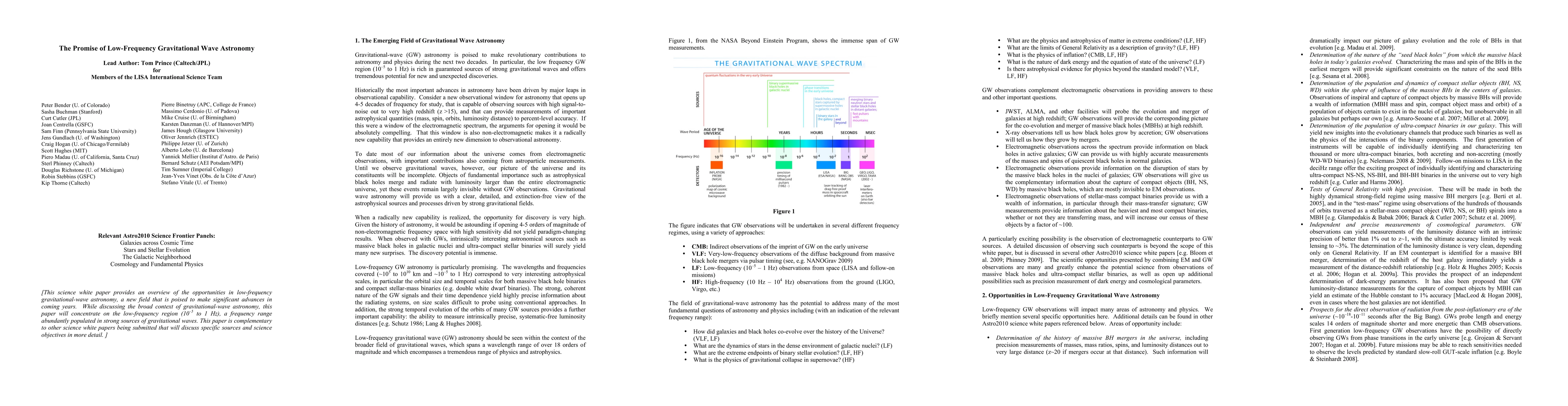 The paper presents a comprehensive overview of low-frequency gravitational wave astronomy, detailing its scientific opportunities and potential impact on various areas of astronomy and physics.