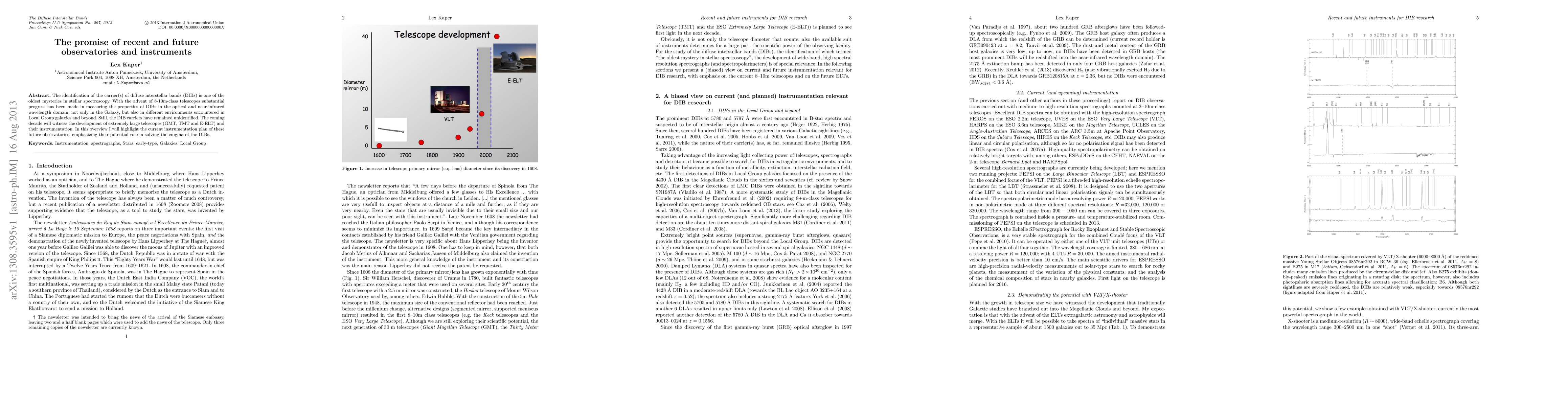 The identification of the carrier(s) of diffuse interstellar bands (DIBs) is one of the oldest mysteries in stellar spectroscopy. With the advent of 8-10m-class telescopes substantial progress has been made in measuring the properties of DIBs in the optical and near-infrared wavelength domain, not only in the Galaxy, but also in different environments encountered in Local Group galaxies and beyond. Still, the DIB carriers have remained unidentified. The coming decade will witness the development of extremely large telescopes (GMT, TMT and E-ELT) and their instrumentation. In this overview I will highlight the current instrumentation plan of these future observatories, emphasizing their potential role in solving the enigma of the DIBs.