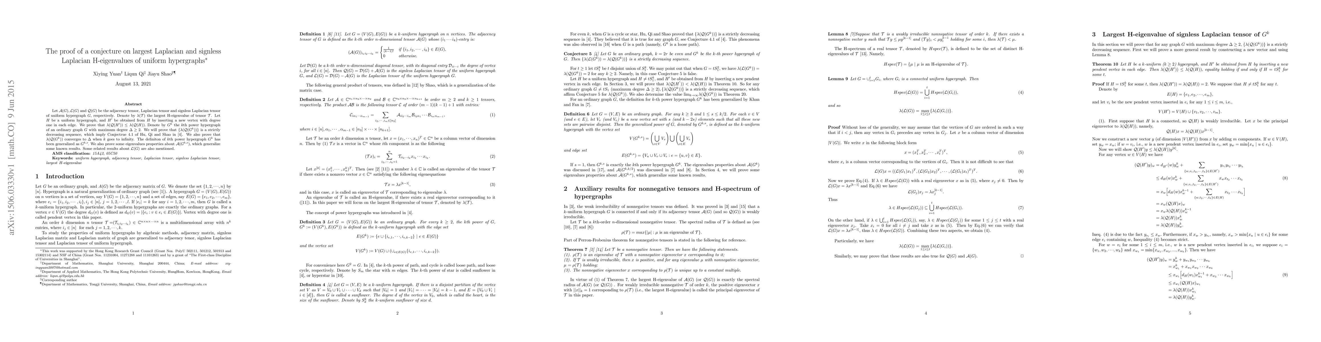 Let $\mathcal{A(}G\mathcal{)},\mathcal{L(}G\mathcal{)}$ and $\mathcal{Q(}% G\mathcal{)}$ be the adjacency tensor, Laplacian tensor and signless Laplacian tensor of uniform hypergraph $G$, respectively. Denote by $\lambda (\mathcal{T})$ the largest H-eigenvalue of tensor $\mathcal{T}$. Let $H$ be a uniform hypergraph, and $H^{\prime}$ be obtained from $H$ by inserting a new vertex with degree one in each edge. We prove that $\lambda(\mathcal{Q(}% H^{\prime}\mathcal{)})\leq\lambda(\mathcal{Q(}H\mathcal{)}).$ Denote by $G^{k}$ the $k$th power hypergraph of an ordinary graph $G$ with maximum degree $\Delta\geq2$. We will prove that $\{\lambda(\mathcal{Q(}% G^{k}\mathcal{)})\}$ is a strictly decreasing sequence, which imply Conjectrue 4.1 of Hu, Qi and Shao in \cite{HuQiShao2013}. We also prove that $\lambda(\mathcal{Q(}G^{k}\mathcal{)})$ converges to $\Delta$ when $k$ goes to infinity. The definiton of $k$th power hypergraph $G^{k}$ has been generalized as $G^{k,s}.$ We also prove some eigenvalues properties about $\mathcal{A(}% G^{k,s}\mathcal{)},$ which generalize some known results. Some related results about $\mathcal{L(}G\mathcal{)}$ are also mentioned.