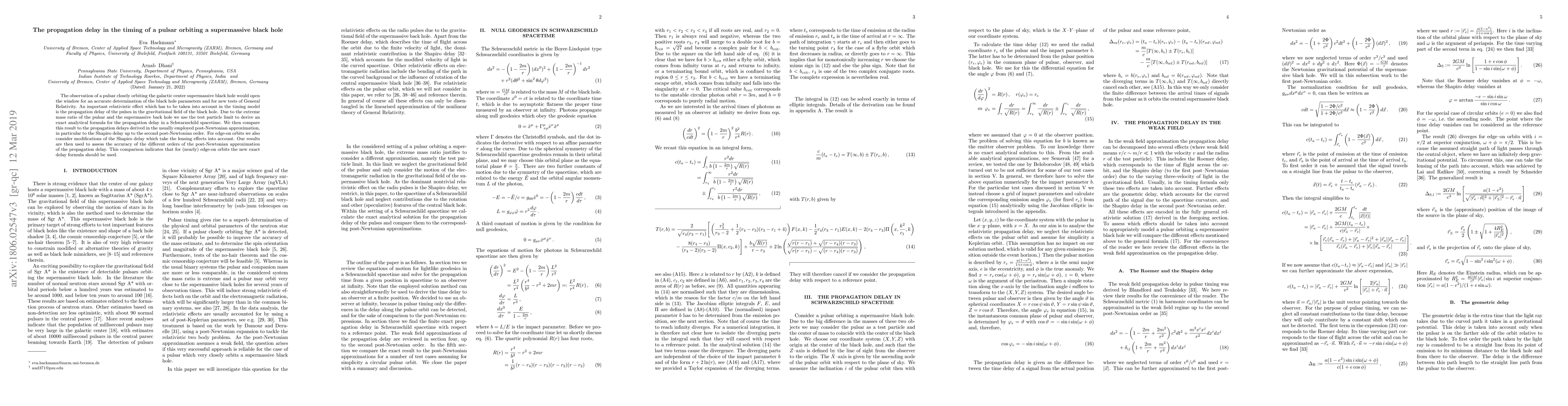 This paper derives an exact analytical formula for the propagation delay of pulsar signals in the gravitational field of a supermassive black hole, comparing it to post-Newtonian approximations, and suggests that the new formula is more accurate for nearly edge-on orbits.