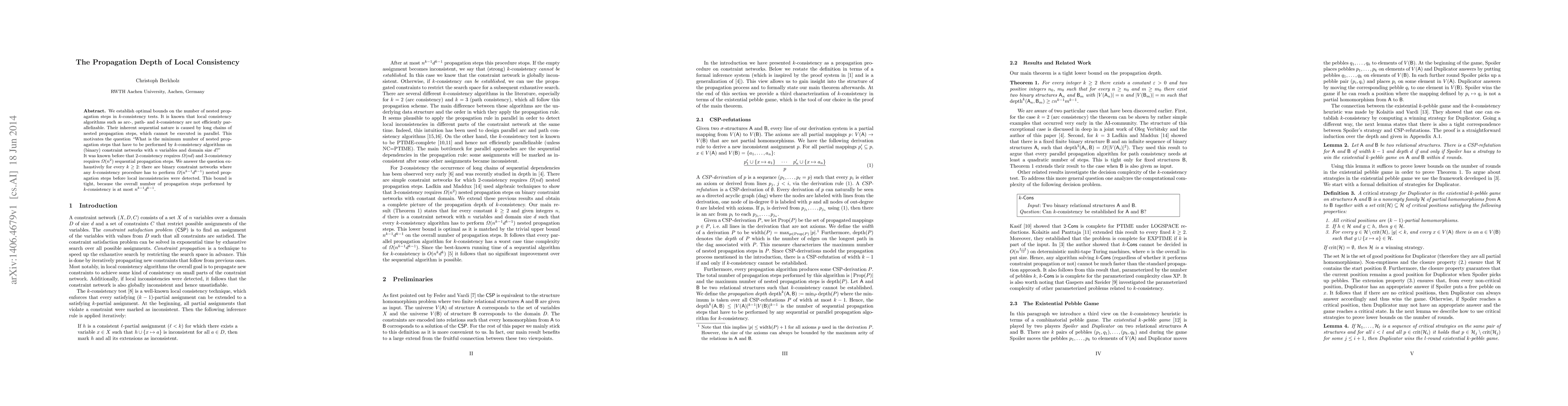 We establish optimal bounds on the number of nested propagation steps in $k$-consistency tests. It is known that local consistency algorithms such as arc-, path- and $k$-consistency are not efficiently parallelizable. Their inherent sequential nature is caused by long chains of nested propagation steps, which cannot be executed in parallel. This motivates the question "What is the minimum number of nested propagation steps that have to be performed by $k$-consistency algorithms on (binary) constraint networks with $n$ variables and domain size $d$?" It was known before that 2-consistency requires $\Omega(nd)$ and 3-consistency requires $\Omega(n^2)$ sequential propagation steps. We answer the question exhaustively for every $k\geq 2$: there are binary constraint networks where any $k$-consistency procedure has to perform $\Omega(n^{k-1}d^{k-1})$ nested propagation steps before local inconsistencies were detected. This bound is tight, because the overall number of propagation steps performed by $k$-consistency is at most $n^{k-1}d^{k-1}$.