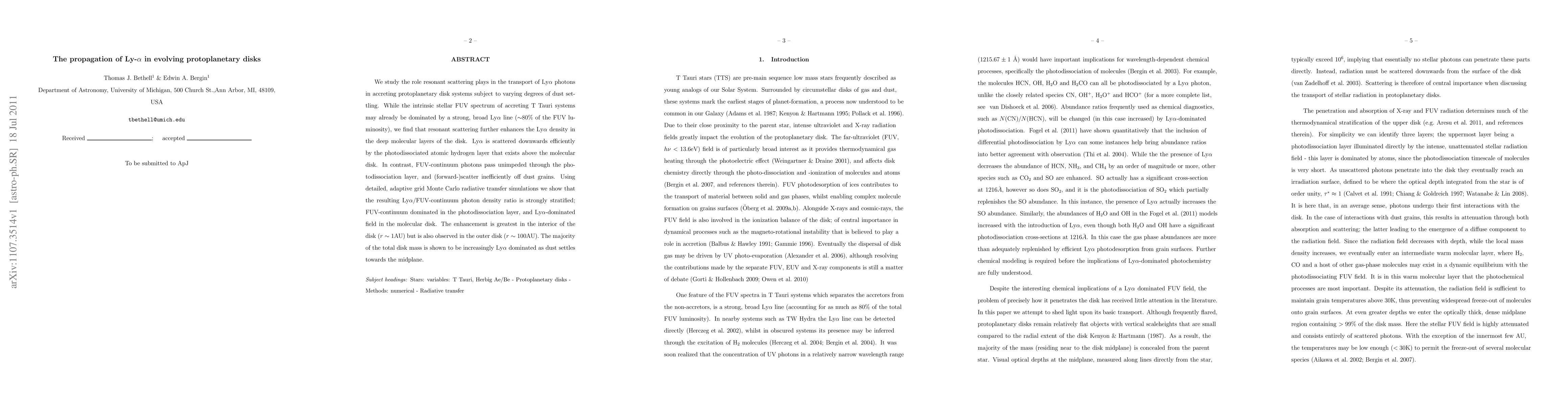 This paper investigates how resonant scattering of Lyman-alpha photons enhances their density in the deep molecular layers of evolving protoplanetary disks, contrasting it with the behavior of FUV-continuum photons. The study finds that Lyman-alpha photons are efficiently scattered downwards, dominating the molecular disk, while FUV-continuum photons pass through the photodissociation layer.