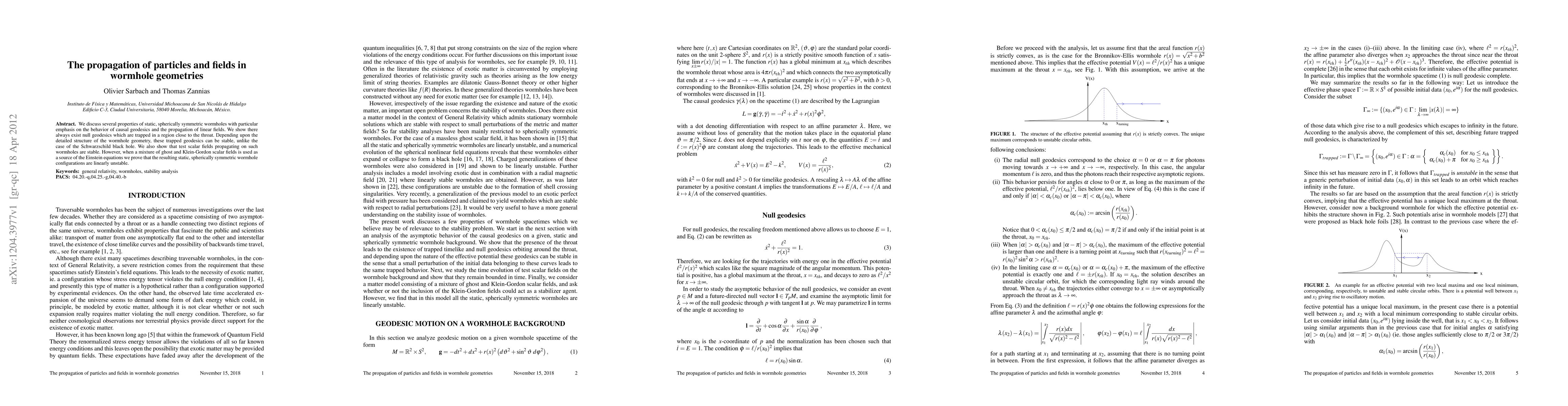 This paper investigates static, spherically symmetric wormholes, focusing on trapped null geodesics and stable propagation of linear fields. It reveals that wormholes can have stable trapped geodesics, unlike Schwarzschild black holes, but configurations sourced by ghost and Klein-Gordon fields are linearly unstable.