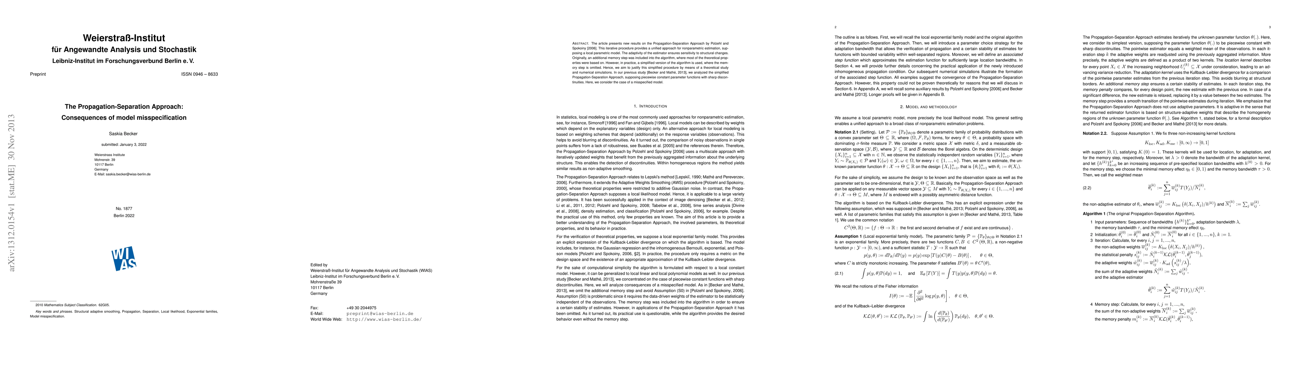 The article presents new results on the Propagation-Separation Approach by Polzehl and Spokoiny [2006]. This iterative procedure provides a unified approach for nonparametric estimation, sup- posing a local parametric model. The adaptivity of the estimator ensures sensitivity to structural changes. Originally, an additional memory step was included into the algorithm, where most of the theoretical prop- erties were based on. However, in practice, a simplified version of the algorithm is used, where the mem- ory step is omitted. Hence, we aim to justify this simplified procedure by means of a theoretical study and numerical simulations. In our previous study [Becker and Math\'e, 2013], we analyzed the simplified Propagation-Separation Approach, supposing piecewise constant parameter functions with sharp discon- tinuities. Here, we consider the case of a misspecified model.