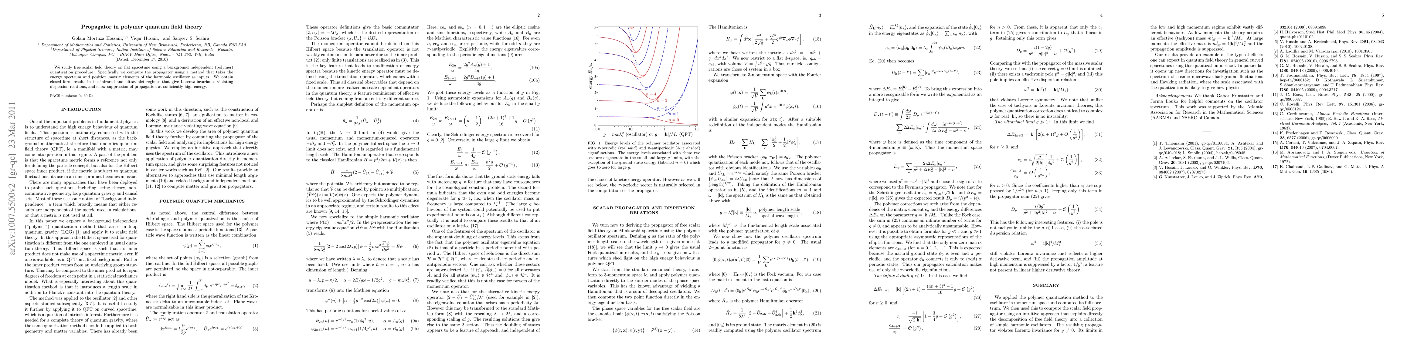 We study free scalar field theory on flat spacetime using a background independent (polymer) quantization procedure. Specifically we compute the propagator using a method that takes the energy spectrum and position matrix elements of the harmonic oscillator as inputs. We obtain closed form results in the infrared and ultraviolet regimes that give Lorentz invariance violating dispersion relations, and show suppression of propagation at sufficiently high energy.