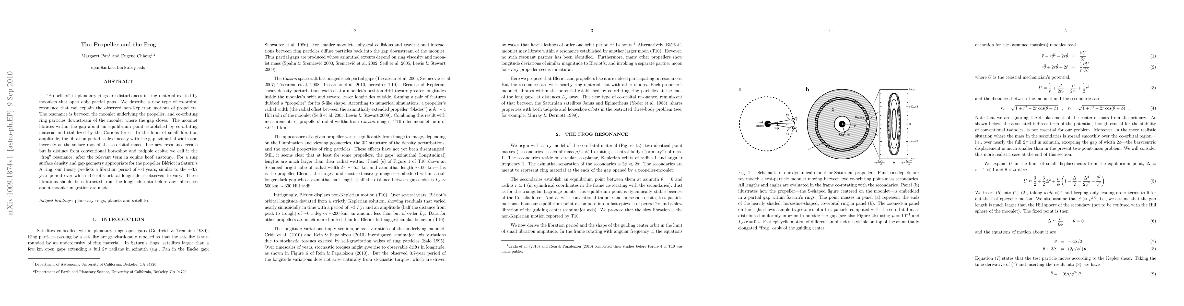 This paper introduces a new co-orbital resonance termed the "frog" resonance to explain the non-Keplerian motions of "propellers" in planetary rings, which are partial gaps created by moonlets. The resonance involves the moonlet and downstream ring particles, predicting a libration period that matches observations of the Bl\'eriot propeller in Saturn's A ring.