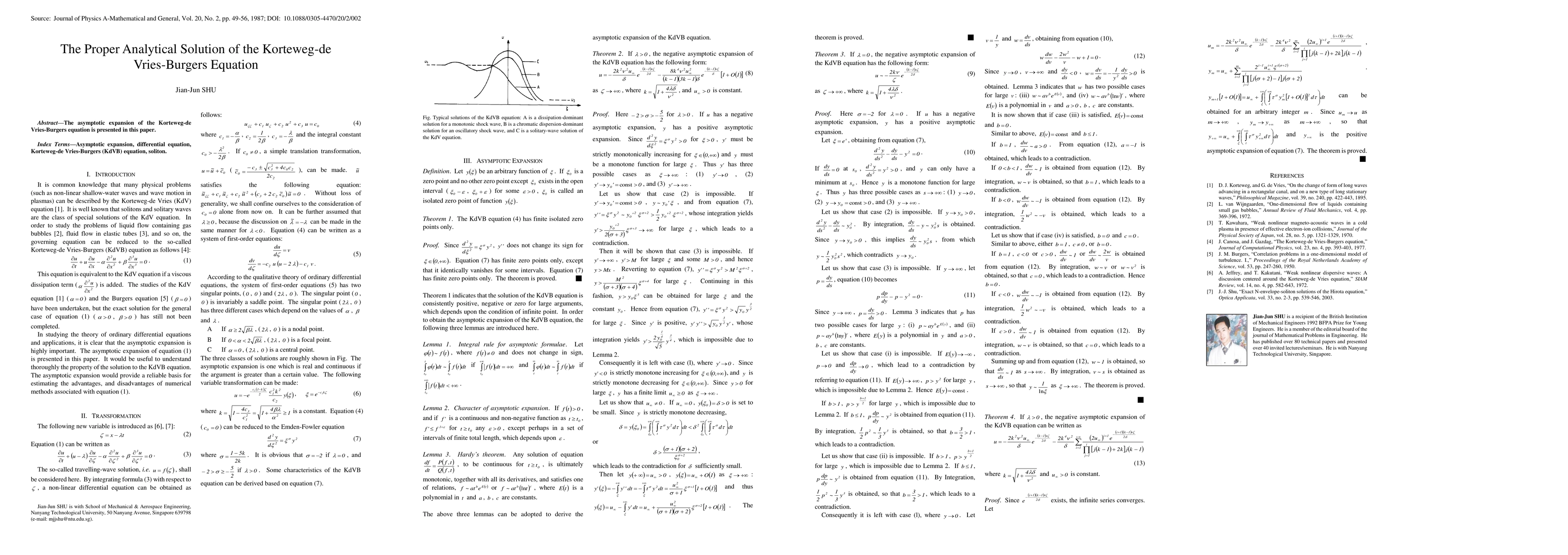 Summary: This paper provides an analytical solution for the asymptotic expansion of the Korteweg-de Vries-Burgers equation, offering a detailed examination of its behavior under specific conditions. The findings contribute to a deeper understanding of the equation's dynamics.