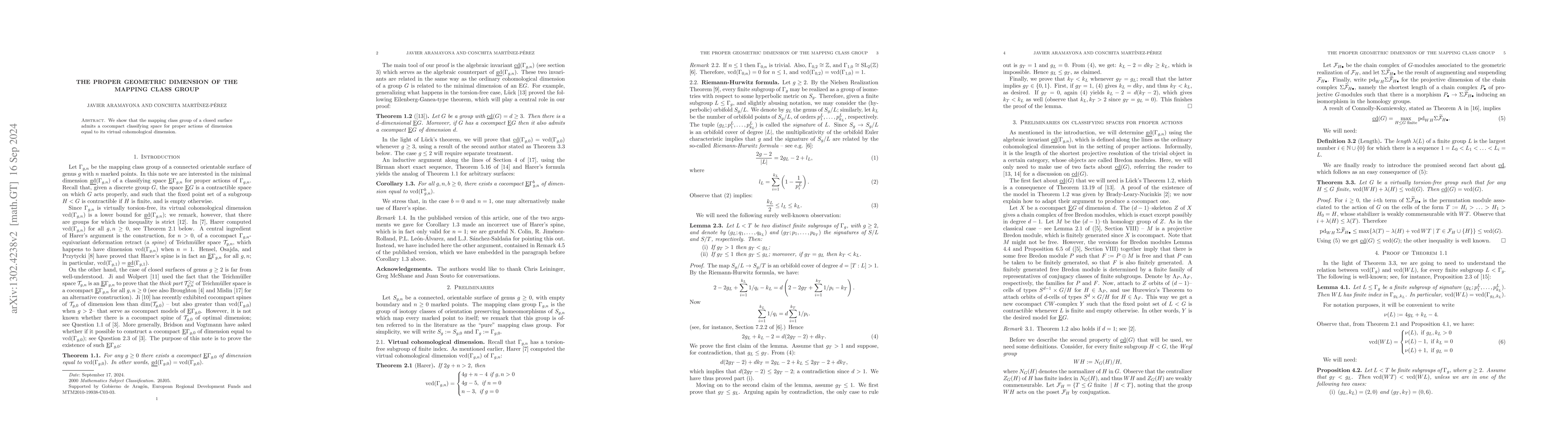 Summary: The paper demonstrates that the mapping class group of a closed surface has a cocompact classifying space whose dimension matches its virtual cohomological dimension, establishing the proper geometric dimension for its actions.