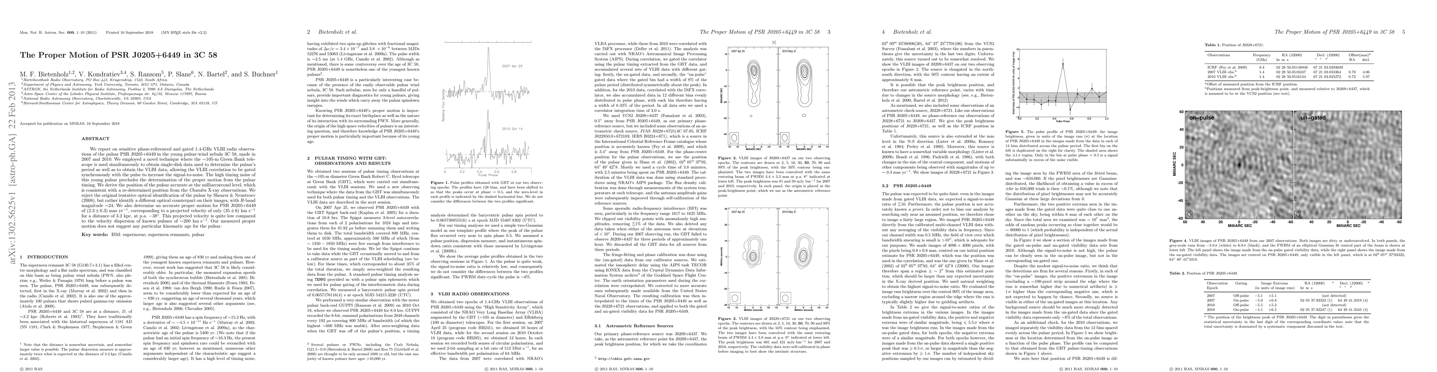 This paper reports on VLBI observations of the pulsar PSR J0205+6449 in 3C 58, determining its accurate position and proper motion of (2.3 ± 0.3) mas/yr, corresponding to a low projected velocity of (35 ± 6) km/s, which does not indicate a particular kinematic age for the pulsar.