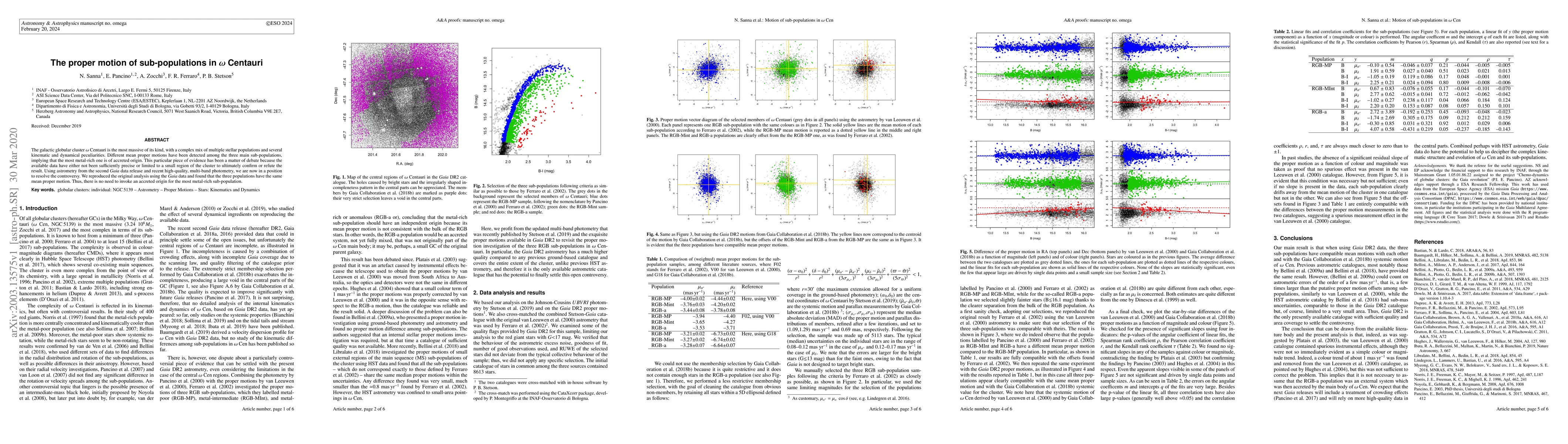 The paper presents an updated and precise analysis of Omega Centauri's sub-populations' proper motions, leveraging Gaia DR2 data and high-quality photometry.