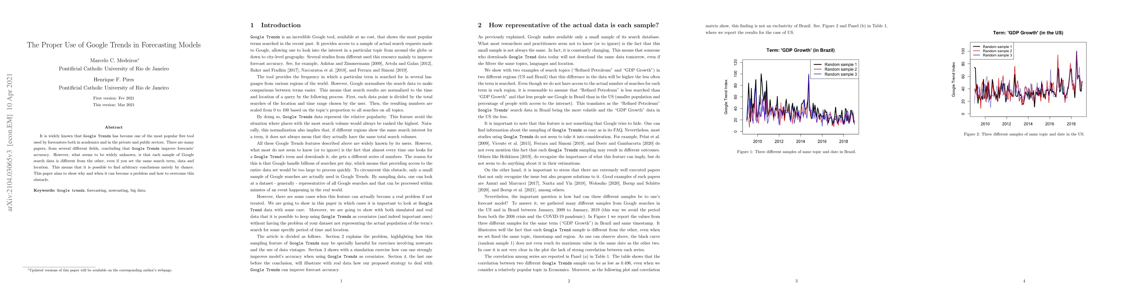 It is widely known that Google Trends have become one of the most popular free tools used by forecasters both in academics and in the private and public sectors. There are many papers, from several different fields, concluding that Google Trends improve forecasts' accuracy. However, what seems to be widely unknown, is that each sample of Google search data is different from the other, even if you set the same search term, data and location. This means that it is possible to find arbitrary conclusions merely by chance. This paper aims to show why and when it can become a problem and how to overcome this obstacle.