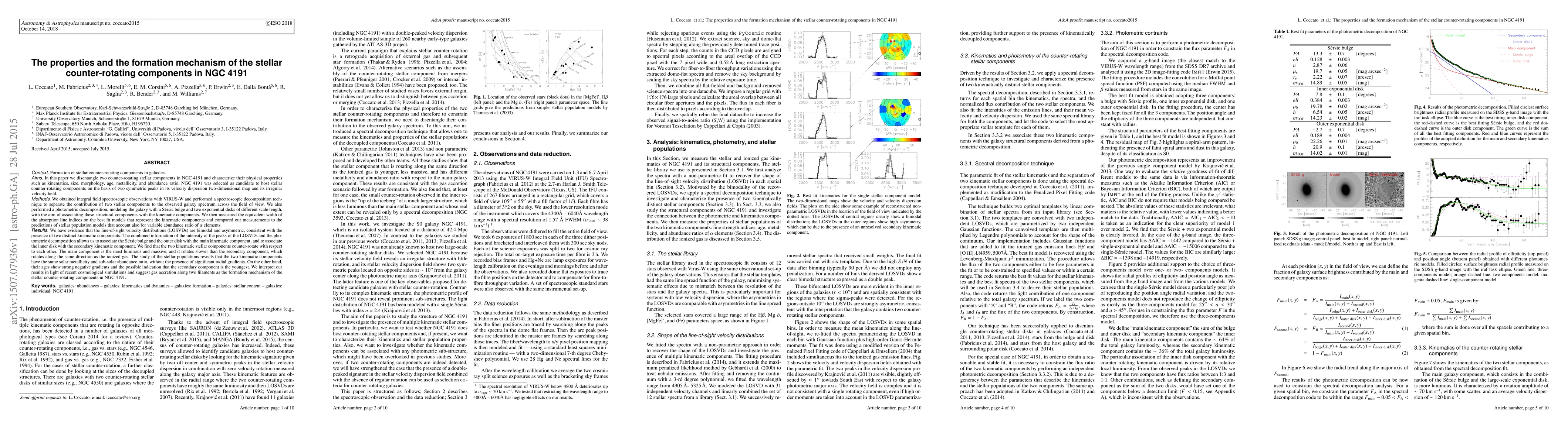 This paper analyzes NGC 4191, identifying two counter-rotating stellar components through spectroscopic and photometric decomposition. The main component is more luminous and massive, while the secondary component, which rotates with ionized gas, may be younger. Both components share similar metallicity and abundance ratios but exhibit age gradients, suggesting a formation mechanism involving gas accretion along two filaments.