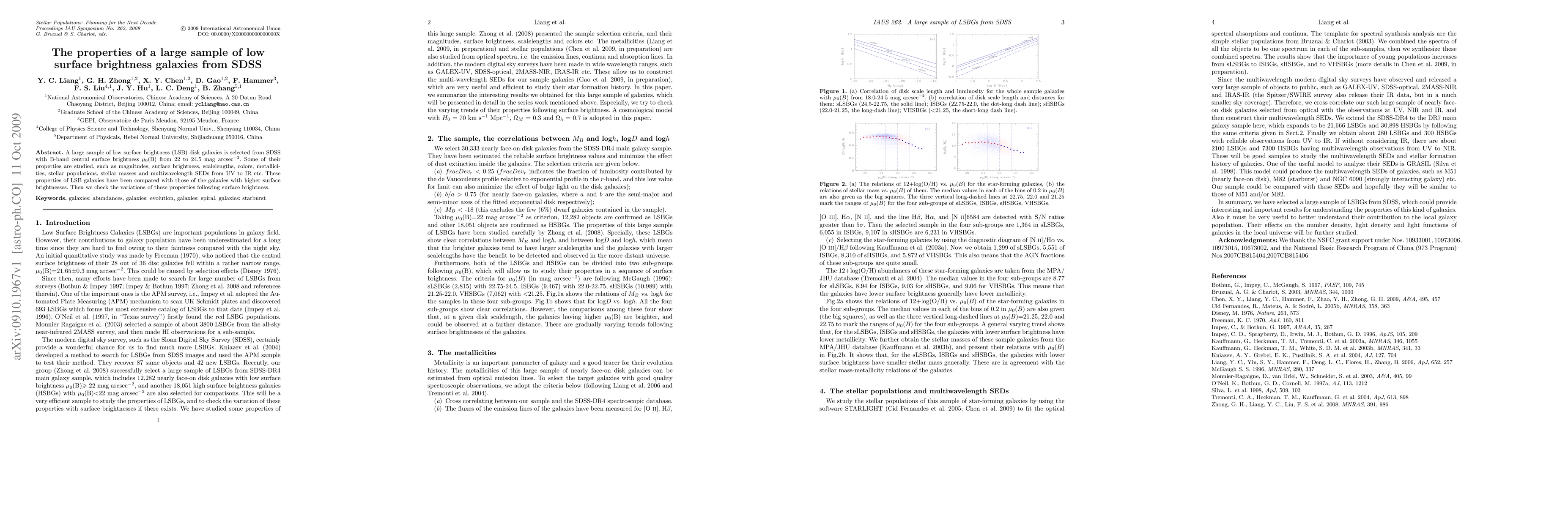 This paper investigates a large sample of low surface brightness galaxies from SDSS, examining their magnitudes, colors, metallicities, and stellar populations. Comparisons are made with higher surface brightness galaxies to explore variations in these properties with surface brightness.