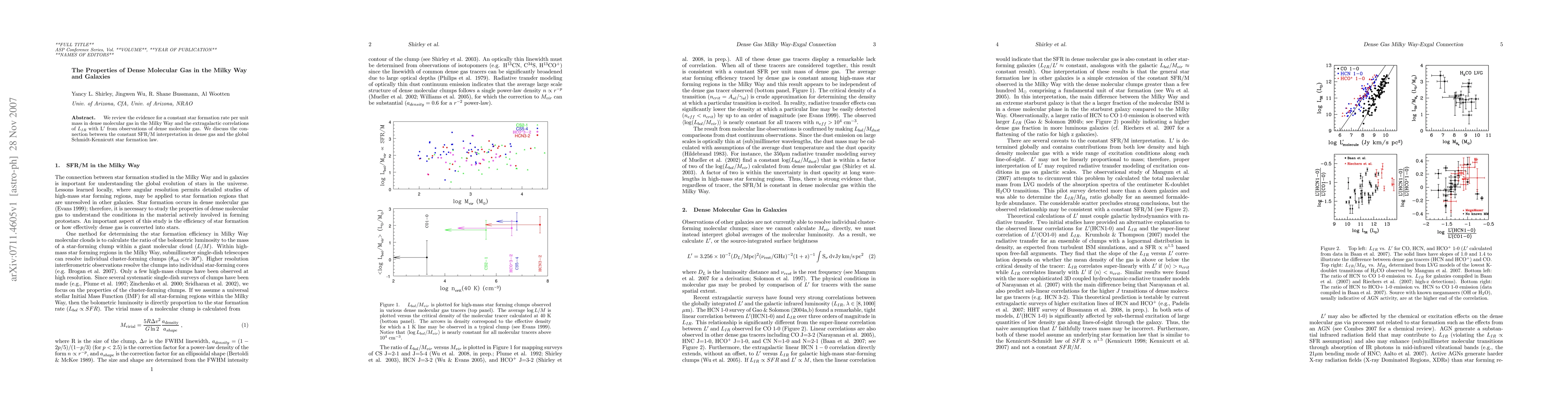 We review the evidence for a constant star formation rate per unit mass in dense molecular gas in the Milky Way and the extragalactic correlations of L_IR with L' from observations of dense molecular gas. We discuss the connection between the constant SFR/M interpretation in dense gas and the global Schmidt-Kennicutt star formation law.