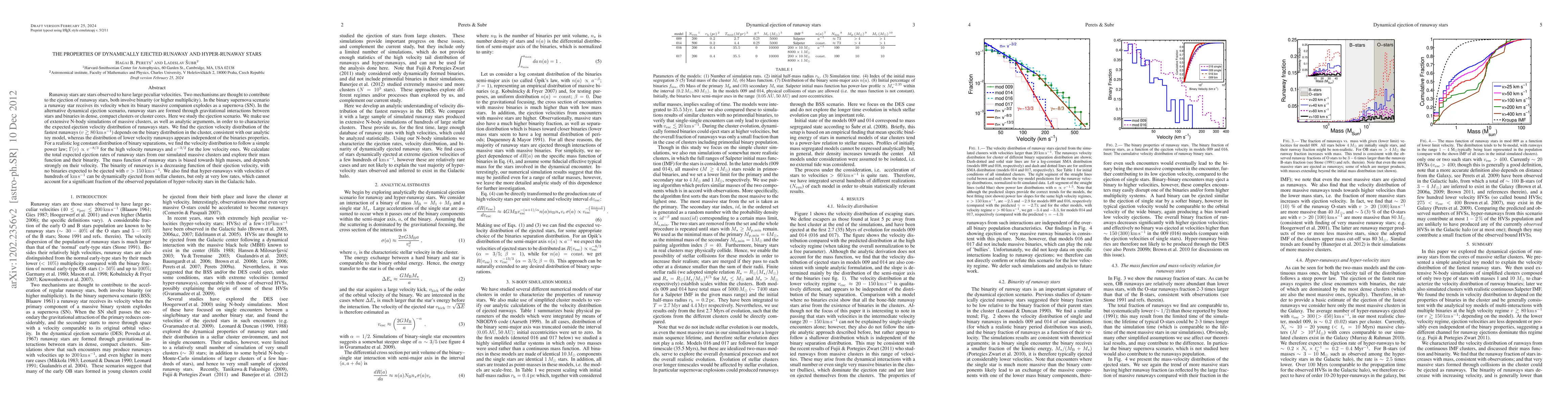 This paper investigates the dynamical ejection of runaway stars via gravitational interactions in dense clusters, using N-body simulations and analytic models. It finds that the ejection velocity distribution depends on binary properties, with high-velocity runaways (>80 km s^-1) following a v^(-8/3) power law, while low-velocity ones follow a v^(-3/2) distribution. The study also reveals that runaway stars are biased towards higher masses and decreasing binarity with increasing ejection velocity.