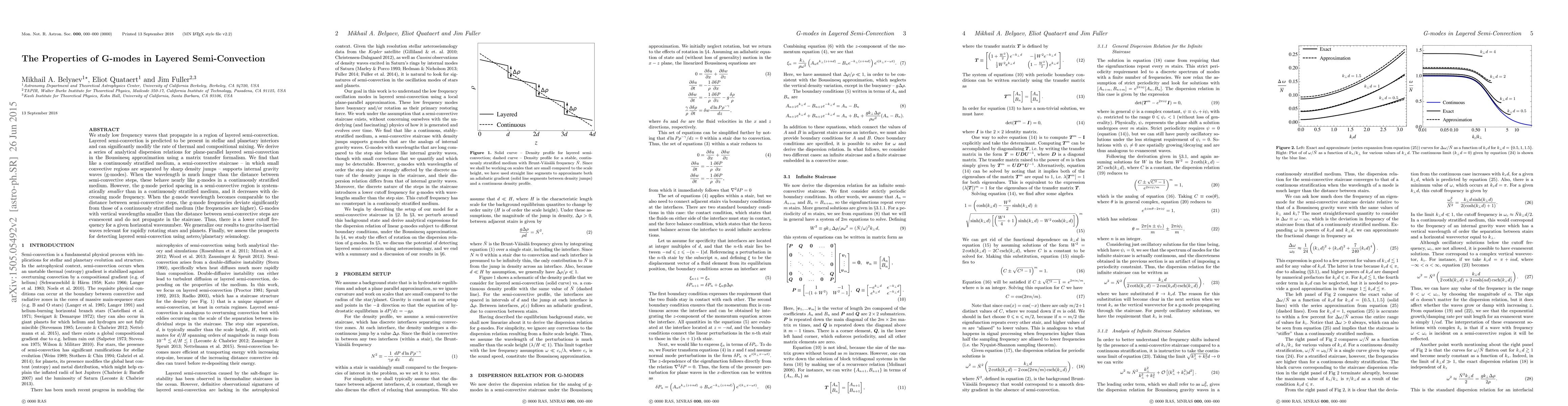 The paper presents analytical solutions for g-mode dispersion relations in layered semi-convection using a matrix transfer formalism, extending previous work to finite staircases embedded in a convective medium and considering rotation effects.