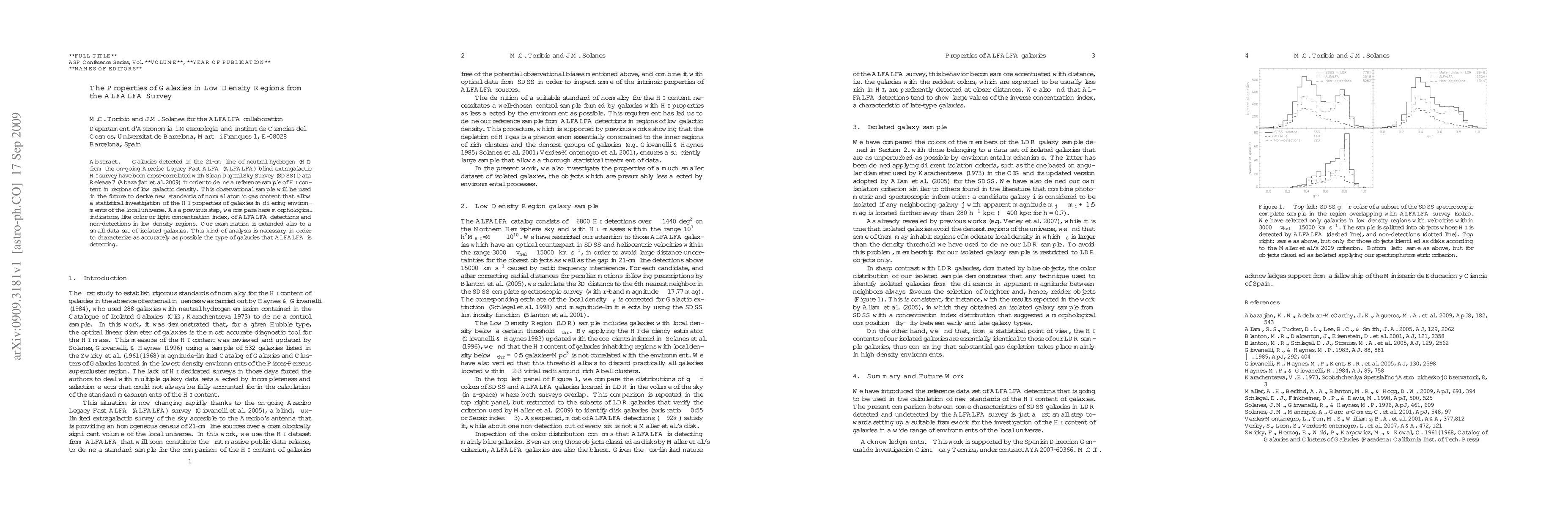 This study uses the ALFALFA survey to analyze galaxies in low-density regions, correlating HI content with SDSS data to define a reference sample. The study compares morphological indicators of detected versus non-detected galaxies to characterize the types of galaxies ALFALFA identifies.