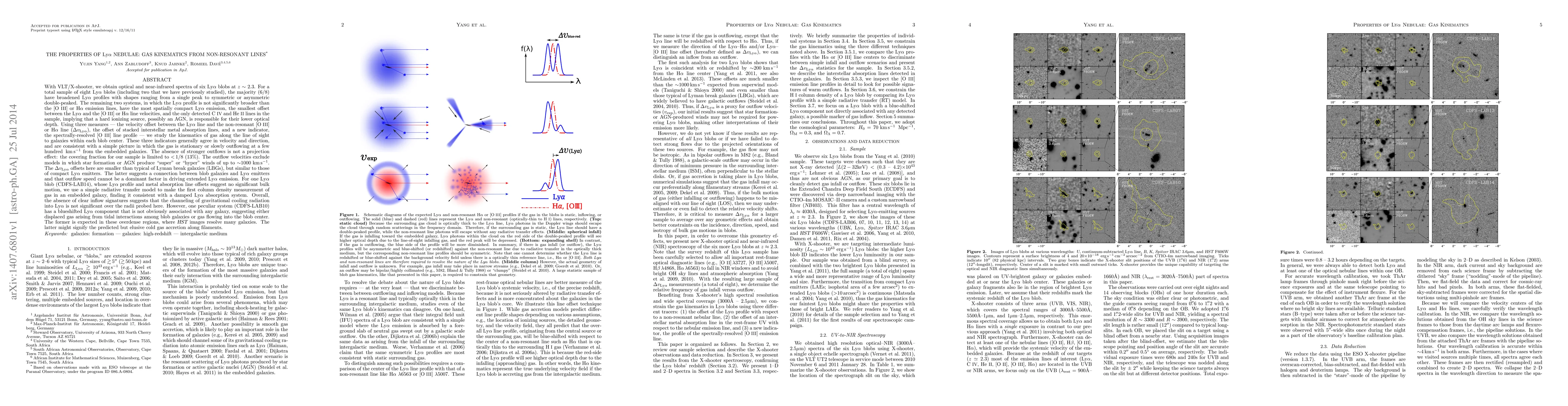 [Abridged] With VLT/X-shooter, we obtain optical and NIR spectra of six Ly-alpha blobs at z~2.3. Using three measures --- the velocity offset between the Lya line and the non-resonant [OIII] or H-alpha line (Dv_Lya), the offset of stacked interstellar metal absorption lines, and the spectrally-resolved [OIII] line profile --- we study the kinematics of gas along the line of sight to galaxies within each blob center. These three indicators generally agree in velocity and direction, and are consistent with a simple picture in which the gas is stationary or slowly outflowing at a few hundred km/s from the embedded galaxies. The absence of stronger outflows is not a projection effect: the covering fraction for our sample is limited to <1/8 (13%). The outflow velocities exclude models in which star formation or AGN produce "super" or "hyper" winds of up to ~1000km/s. The Dv_Lya offsets here are smaller than typical of LBGs, but similar to those of compact LAEs. The latter suggests that outflow speed cannot be a dominant factor in driving extended Lya emission. For one Lya blob (CDFS-LAB14), whose Lya profile and metal absorption line offsets suggest no significant bulk motion, we use a simple radiative transfer model to make the first column density measurement of gas in an embedded galaxy, finding it consistent with a DLA system. Overall, the absence of clear inflow signatures suggests that the channeling of gravitational cooling radiation into Lya is not significant over the radii probed here. However, one peculiar system (CDFS-LAB10) has a blueshifted Lya component that is not obviously associated with any galaxy, suggesting either displaced gas arising from tidal interactions among blob galaxies or gas flowing into the blob center. The former is expected in these overdense regions, and the latter might signify the predicted but elusive cold gas accretion along filaments.