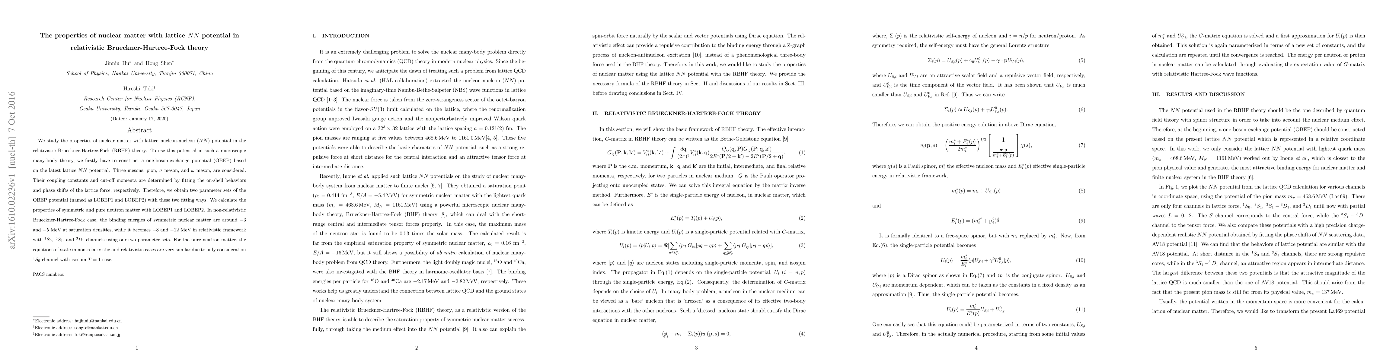 This paper investigates nuclear matter properties using a relativistic Brueckner-Hartree-Fock theory with a lattice nucleon-nucleon potential, constructing a one-boson-exchange potential based on three mesons. The study finds that binding energies in relativistic calculations are significantly higher than in non-relativistic cases, particularly for symmetric nuclear matter.