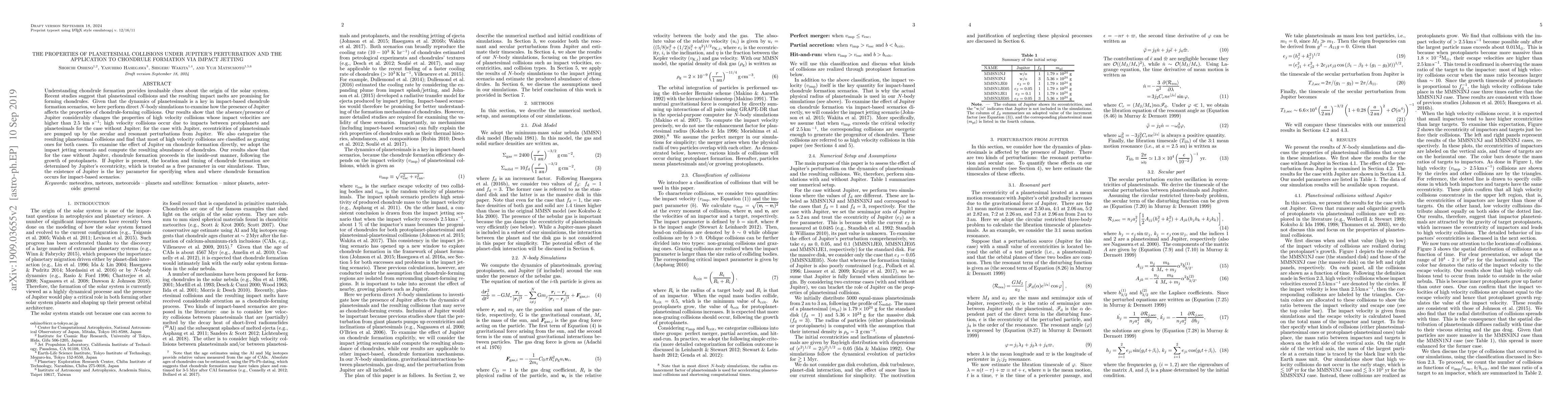 This work distinguishes itself by directly examining Jupiter's role in shaping planetesimal collision properties and chondrule formation timing and location, providing a more nuanced understanding of early solar system processes.