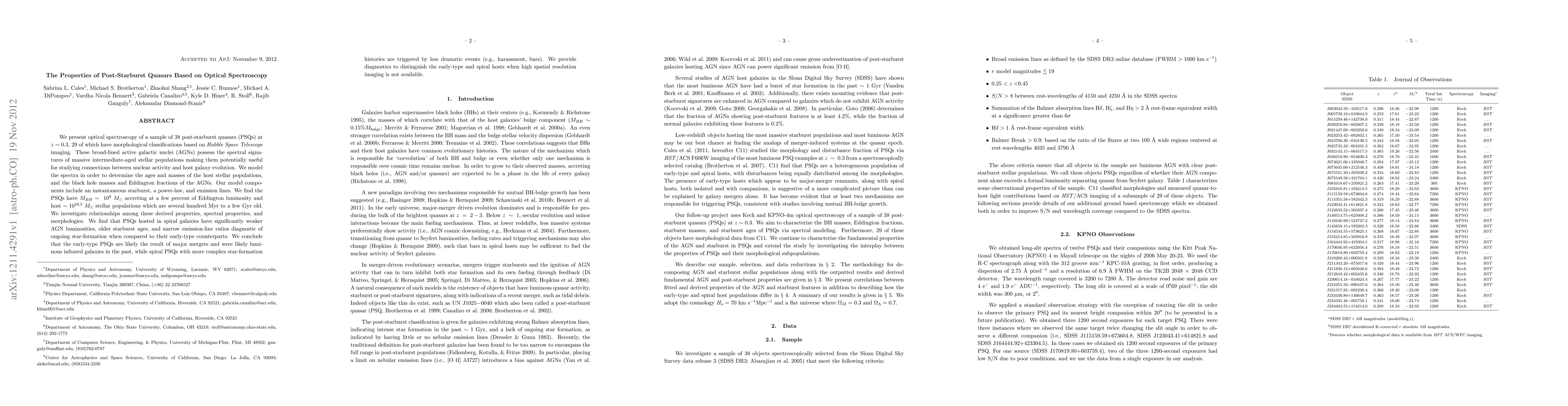 This study uses optical spectroscopy to analyze 38 post-starburst quasars, revealing that early-type PSQs likely result from major mergers, while spiral PSQs are triggered by less dramatic events, showing differences in AGN luminosity, starburst ages, and star-formation activity.