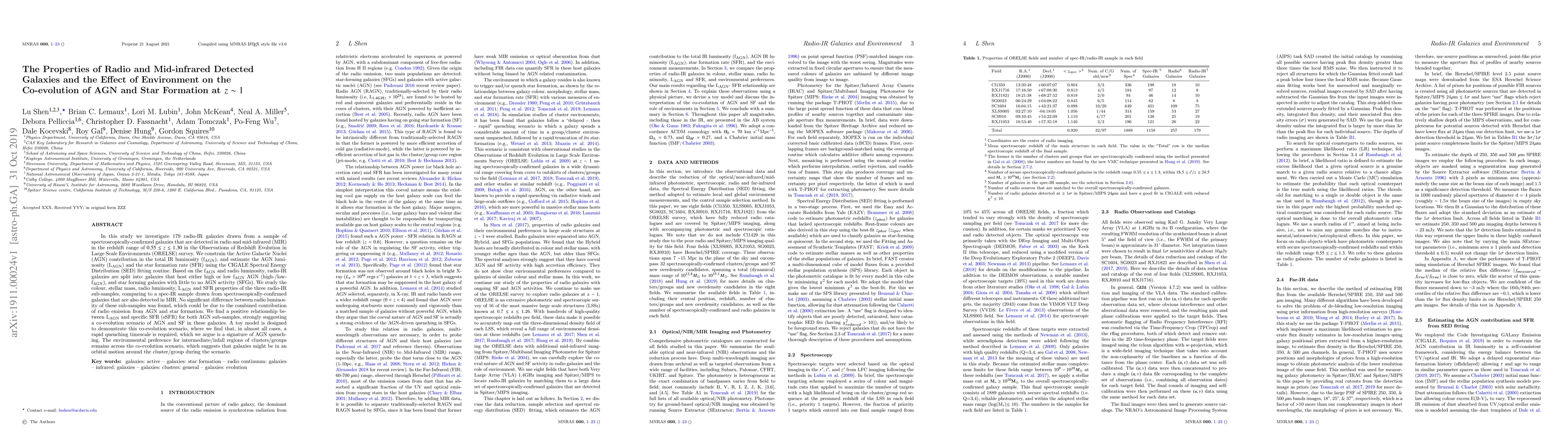 In this study we investigate 179 radio-IR galaxies drawn from a sample of spectroscopically-confirmed galaxies that are detected in radio and mid-infrared (MIR) in the redshift range of $0.55 \leq z \leq 1.30$ in the Observations of Redshift Evolution in Large Scale Environments (ORELSE) survey. We constrain the Active Galactic Nuclei (AGN) contribution in the total IR luminosity (f$_{\text{AGN}}$), and estimate the AGN luminosity (L$_{\text{AGN}}$) and the star formation rate (SFR) using the CIGALE Spectral Energy Distribution (SED) fitting routine. Based on the f$_{\text{AGN}}$ and radio luminosity, radio-IR galaxies are split into: galaxies that host either high or low f$_{\text{AGN}}$ AGN (high-/low-f$_{\text{AGN}}$), and star forming galaxies with little to no AGN activity (SFGs). We study the colour, stellar mass, radio luminosity, L$_{\text{AGN}}$ and SFR properties of the three radio-IR sub-samples, comparing to a spec-IR sample drawn from spectroscopically-confirmed galaxies that are also detected in MIR. No significant difference between radio luminosity of these sub-samples was found, which could be due to the combined contribution of radio emission from AGN and star formation. We find a positive relationship between L$_{\text{AGN}}$and specific SFR (sSFR) for both AGN sub-samples, strongly suggesting a co-evolution scenario of AGN and SF in these galaxies. A toy model is designed to demonstrate this co-evolution scenario, where we find that, in almost all cases, a rapid quenching timescale is required, which we argue is a signature of AGN quenching. The environmental preference for intermediate/infall regions of clusters/groups remains across the co-evolution scenario, which suggests that galaxies might be in an orbital motion around the cluster/group during the scenario.