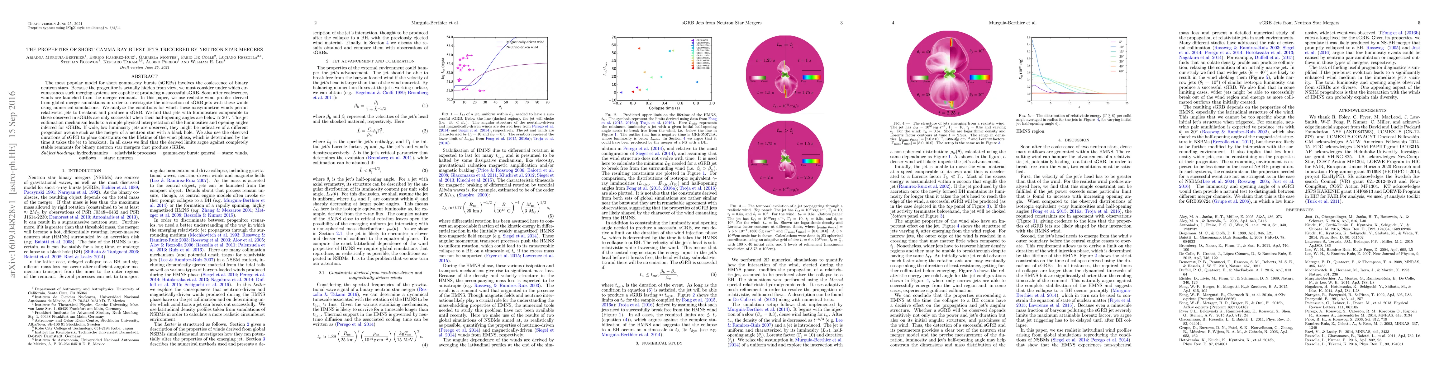 This paper investigates the conditions under which neutron star mergers produce short gamma-ray bursts (sGRBs) by simulating the interaction of sGRB jets with post-merger winds. It finds that successful sGRBs require jets with narrow half-opening angles below ~20°, suggesting alternative progenitors for wide, low-luminosity jets.