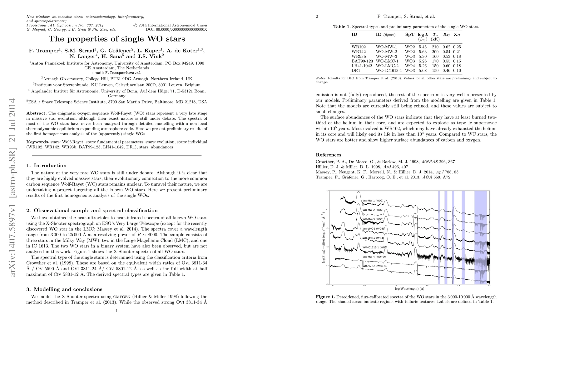 The paper introduces a detailed spectral analysis of single WO stars using cmfgen, providing preliminary parameters and insights into their surface abundances and evolutionary stage.