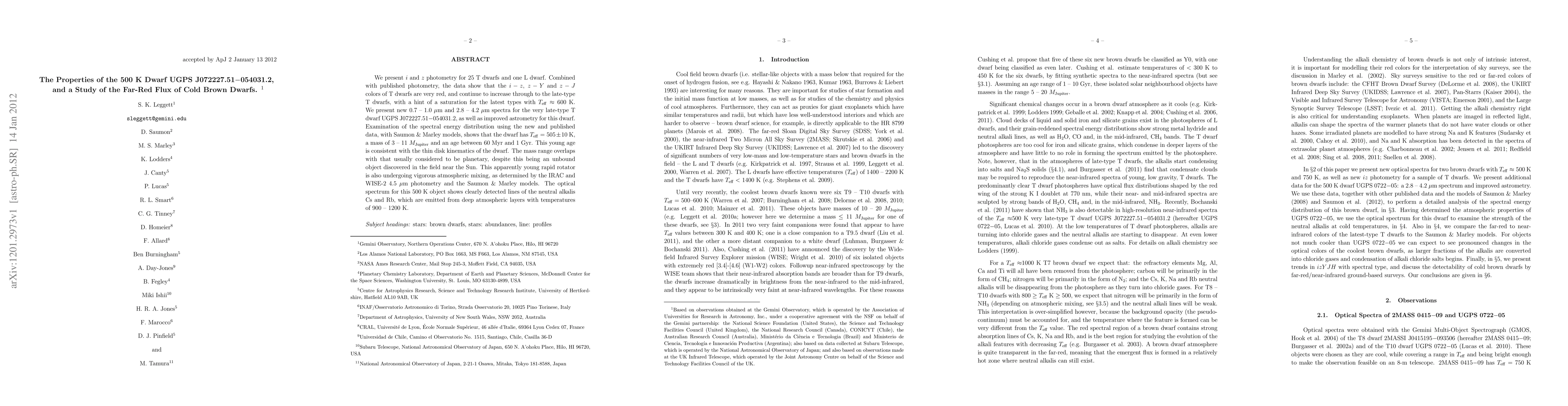 We present i and z photometry for 25 T dwarfs and one L dwarf. Combined with published photometry, the data show that the i - z, z - Y and z - J colors of T dwarfs are very red, and continue to increase through to the late-type T dwarfs, with a hint of a saturation for the latest types with T_eff ~ 600 K. We present new 0.7-1.0 um and 2.8-4.2 um spectra for the very late-type T dwarf UGPS J072227.51-054031.2, as well as improved astrometry for this dwarf. Examination of the spectral energy distribution using the new and published data, with Saumon & Marley models, shows that the dwarf has T_eff = 505 +/- 10 K, a mass of 3-11 M_Jupiter and an age between 60 Myr and 1 Gyr. This young age is consistent with the thin disk kinematics of the dwarf. The mass range overlaps with that usually considered to be planetary, despite this being an unbound object discovered in the field near the Sun. This apparently young rapid rotator is also undergoing vigorous atmospheric mixing, as determined by the IRAC and WISE-2 4.5 um photometry and the Saumon & Marley models. The optical spectrum for this 500 K object shows clearly detected lines of the neutral alkalis Cs and Rb, which are emitted from deep atmospheric layers with temperatures of 900-1200 K.