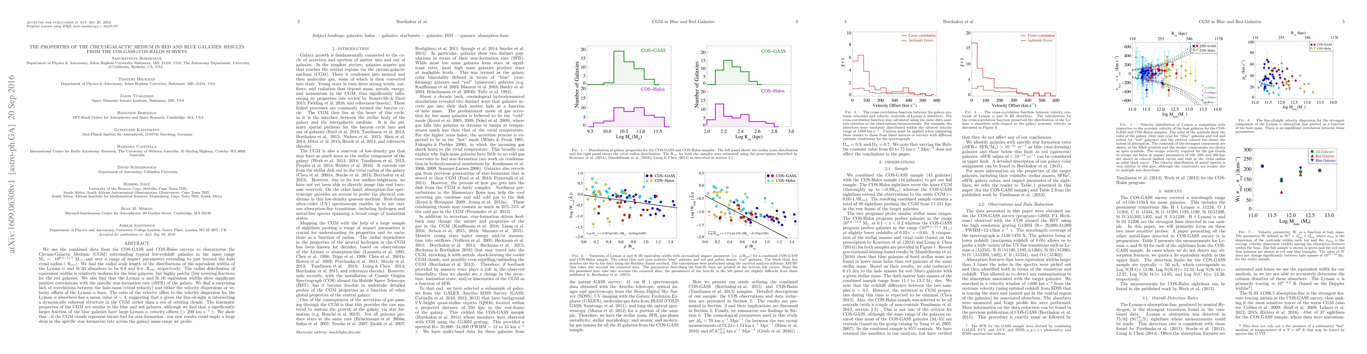 This paper combines COS-GASS and COS-Halos survey data to analyze the Circum-Galactic Medium (CGM) around low-redshift galaxies, finding that blue galaxies exhibit uniform, while red galaxies show patchy, radial distribution of CGM equivalent widths. The study also reveals a significant correlation between CGM properties and specific star-formation rates, suggesting a potential drop in star-formation efficiency across galaxy masses.