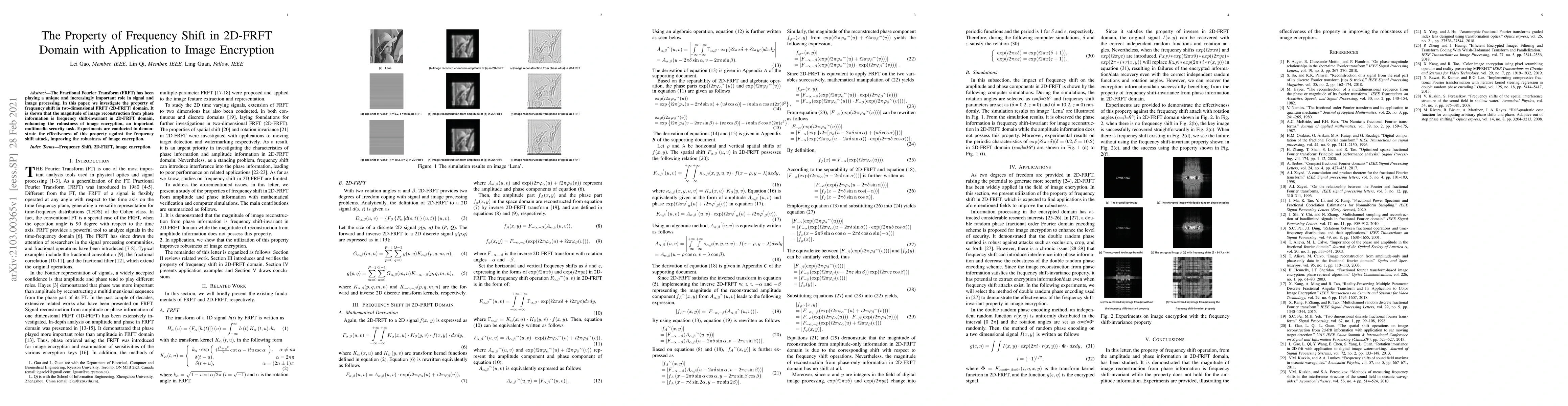 This paper investigates the frequency shift property in the 2D-FRFT domain, demonstrating that image reconstruction from phase information remains invariant under frequency shifts, which enhances the robustness of image encryption. Experiments show this property effectively defends against frequency shift attacks, improving multimedia security.