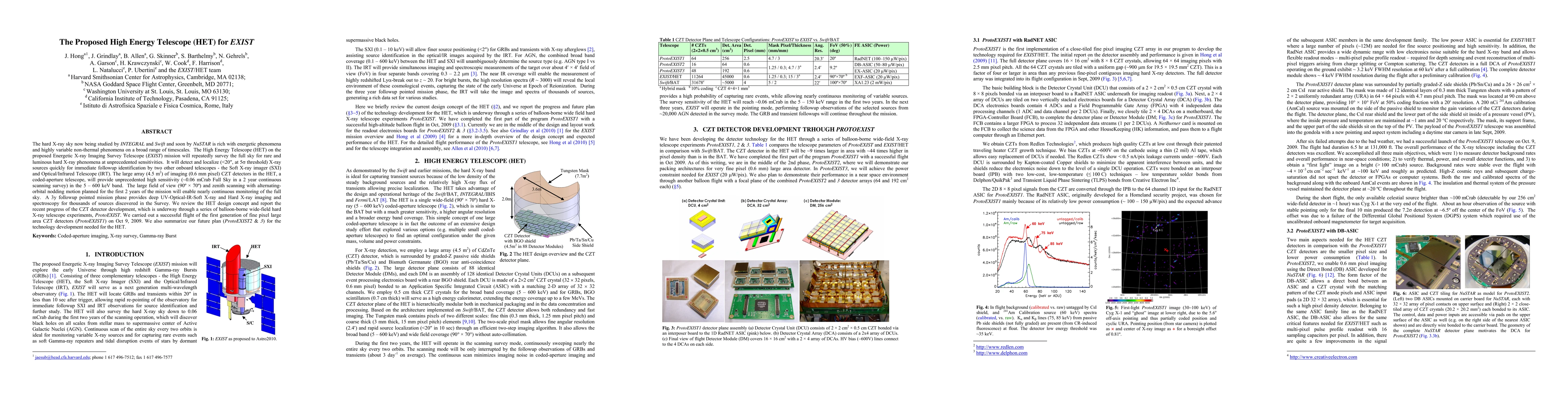 The High Energy Telescope (HET) on the proposed EXIST mission aims to survey the full sky for rare and luminous hard X-ray phenomena with unprecedented sensitivity. The HET's large array of CZT detectors will enable continuous monitoring and deep followup observations in the 5-600 keV band.