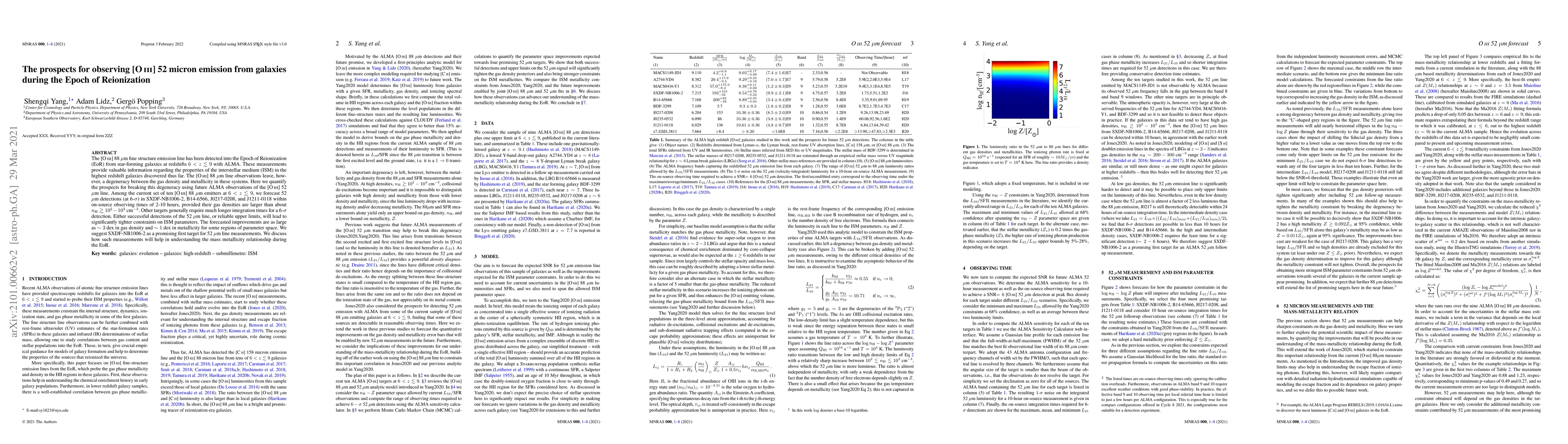 This paper discusses the potential for future ALMA observations to detect the [OIII] 52 micron emission line in galaxies from the Epoch of Reionization, which could help break the degeneracy between gas density and metallicity in these high-redshift systems. It forecasts successful detections within 2-10 hours for specific galaxies, suggesting SXDF-NB1006-2 as a prime target.