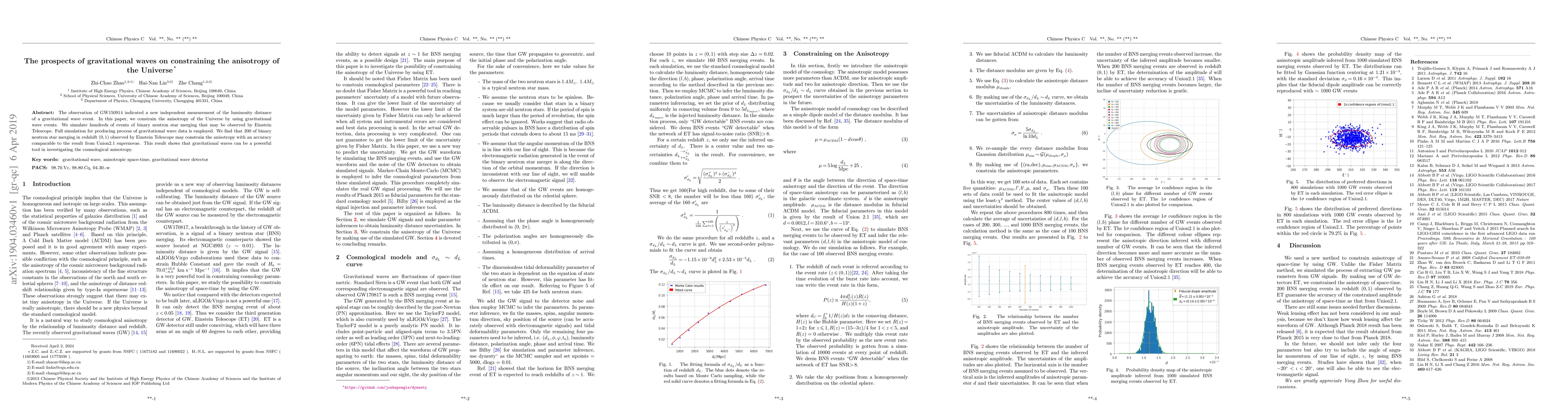 Gravitational waves can constrain the anisotropy of the Universe with accuracy comparable to supernovae observations, offering a new tool for investigating cosmological anomalies.