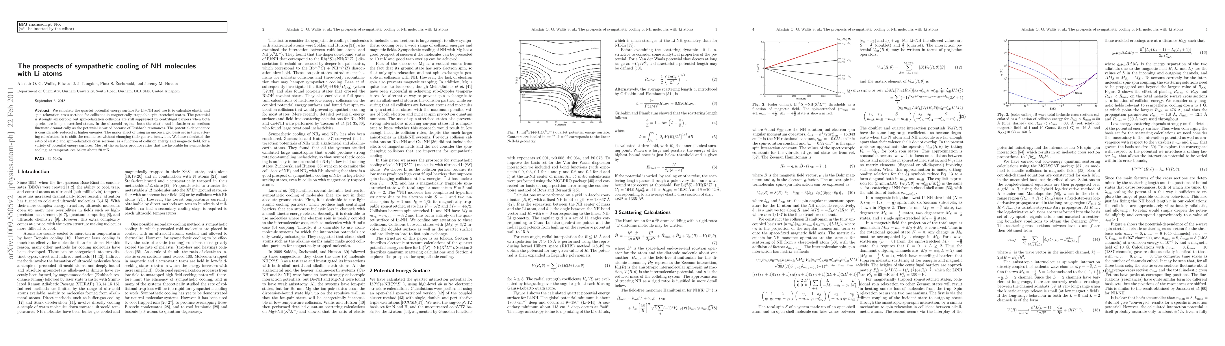We calculate the quartet potential energy surface for Li+NH and use it to calculate elastic and spin-relaxation cross sections for collisions in magnetically trappable spin-stretched states. The potential is strongly anisotropic but spin-relaxation collisions are still suppressed by centrifugal barriers when both species are in spin-stretched states. In the ultracold regime, both the elastic and inelastic cross sections fluctuate dramatically as the potential is varied because of Feshbach resonances. The potential-dependence is considerably reduced at higher energies. The major effect of using an unconverged basis set in the scattering calculations is to shift the resonances without changing their general behaviour. We have calculated the ratio of elastic and spin-relaxation cross sections, as a function of collision energy and magnetic field, for a variety of potential energy surfaces. Most of the surfaces produce ratios that are favorable for sympathetic cooling, at temperatures below about 20 mK.