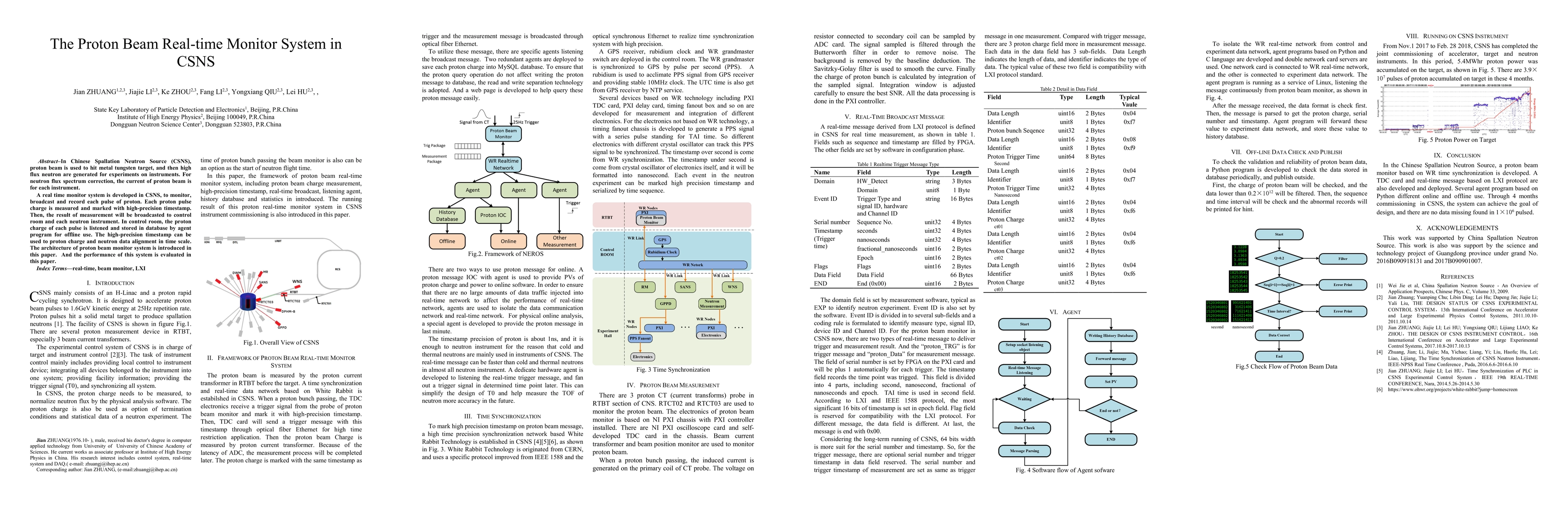 The paper describes the development of a real-time monitor system for the proton beam in CSNS, which measures and timestamps each proton pulse, broadcasting the data for neutron flux spectrum correction and alignment. The system's performance is evaluated, highlighting its precision and effectiveness in neutron experiments.