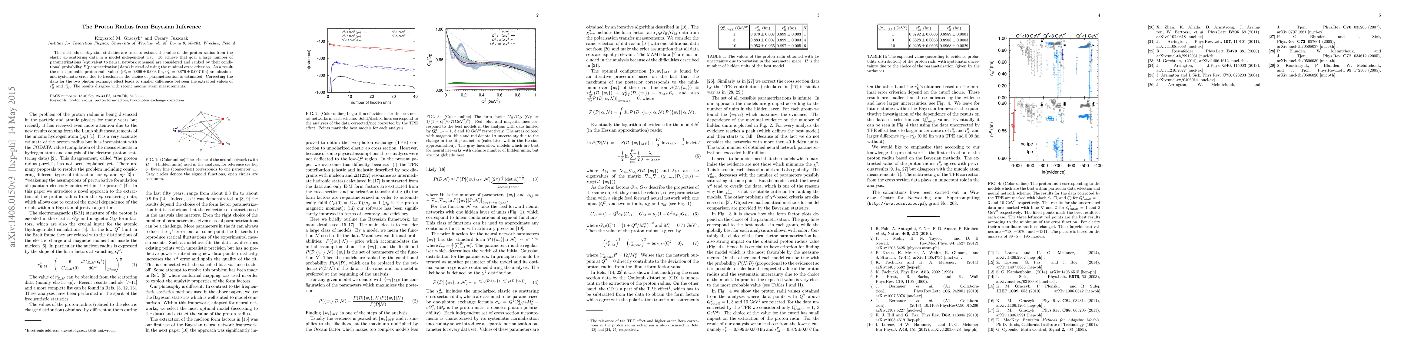 Researchers used Bayesian statistics to determine the proton radius from elastic scattering data, finding that the most probable radii values ($r_E^p=0.899 ext{ fm}$, $r_M^p=0.879 ext{ fm}$) differ from recent muonic atom measurements, highlighting the importance of correcting for two-photon exchange effects.
