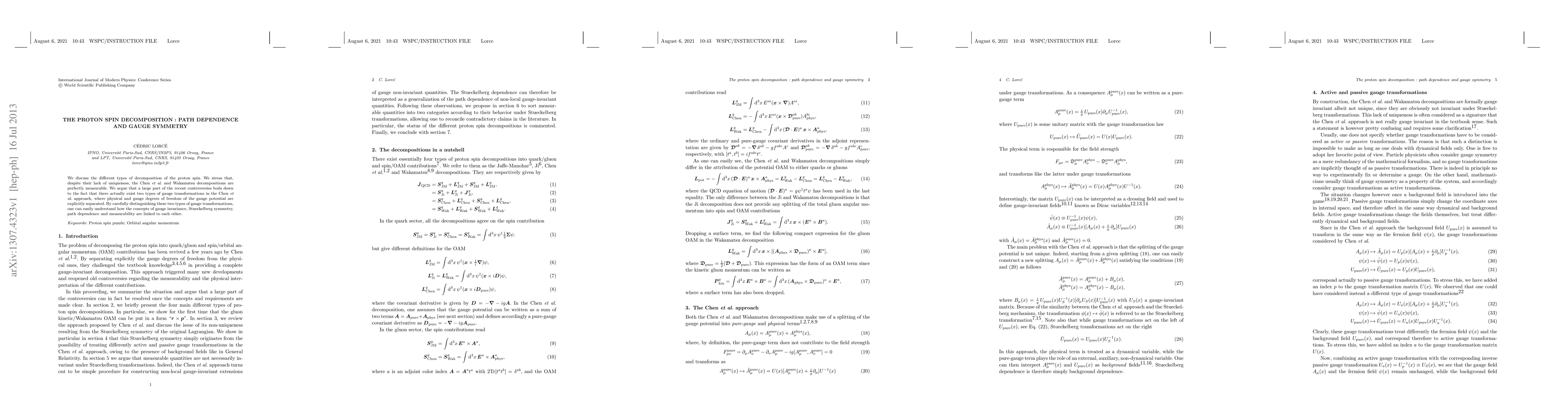 This paper explores various decompositions of the proton spin, emphasizing the measurability of the Chen et al. and Wakamatsu decompositions. It highlights the existence of two types of gauge transformations in the Chen et al. approach, which clarifies the relationship between gauge invariance, Stueckelberg symmetry, path dependence, and measurability.