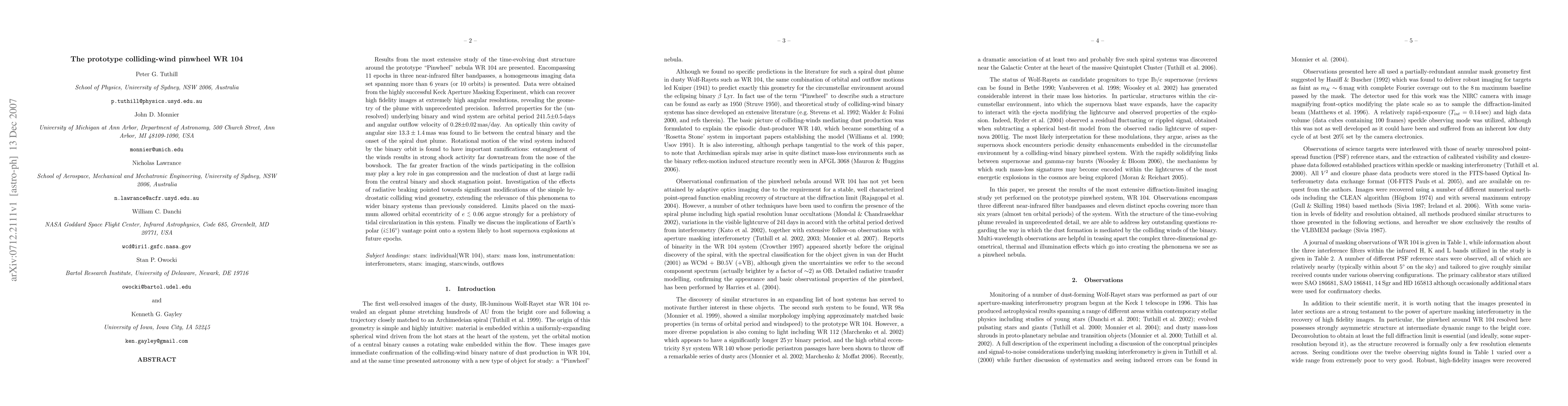Results from the most extensive study of the time-evolving dust structure around the prototype "Pinwheel" nebula WR 104 are presented. Encompassing 11 epochs in three near-infrared filter bandpasses, a homogeneous imaging data set spanning more than 6 years (or 10 orbits) is presented. Data were obtained from the highly successful Keck Aperture Masking Experiment, which can recover high fidelity images at extremely high angular resolutions, revealing the geometry of the plume with unprecedented precision. Inferred properties for the (unresolved) underlying binary and wind system are orbital period 241.5 +/- 0.5 days and angular outflow velocity of 0.28 +/- 0.02 mas/day. An optically thin cavity of angular size 13.3 +/- 1.4 mas was found to lie between the central binary and the onset of the spiral dust plume. Rotational motion of the wind system induced by the binary orbit is found to have important ramifications: entanglement of the winds results in strong shock activity far downstream from the nose of the bowshock. The far greater fraction of the winds participating in the collision may play a key role in gas compression and the nucleation of dust at large radii from the central binary and shock stagnation point. Investigation of the effects of radiative braking pointed towards significant modifications of the simple hydrostatic colliding wind geometry, extending the relevance of this phenomena to wider binary systems than previously considered. Limits placed on the maximum allowed orbital eccentricity of e < 0.06 argue strongly for a prehistory of tidal circularization in this system. Finally we discuss the implications of Earth's polar (i < 16 deg) vantage point onto a system likely to host supernova explosions at future epochs.